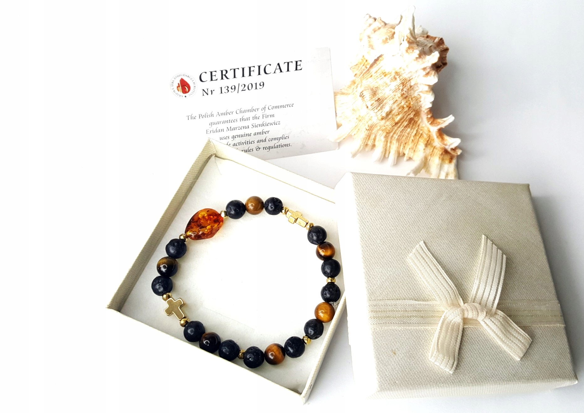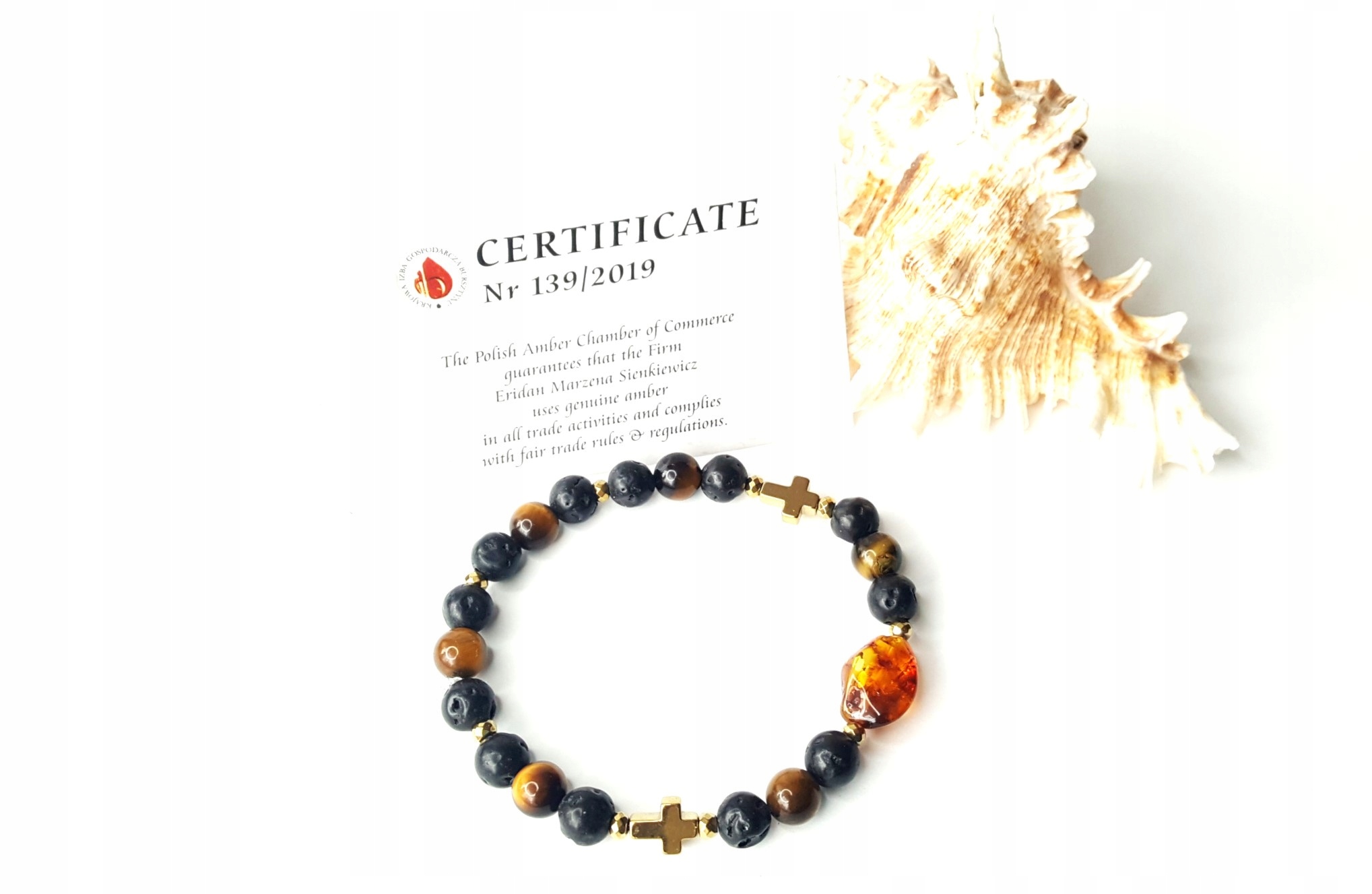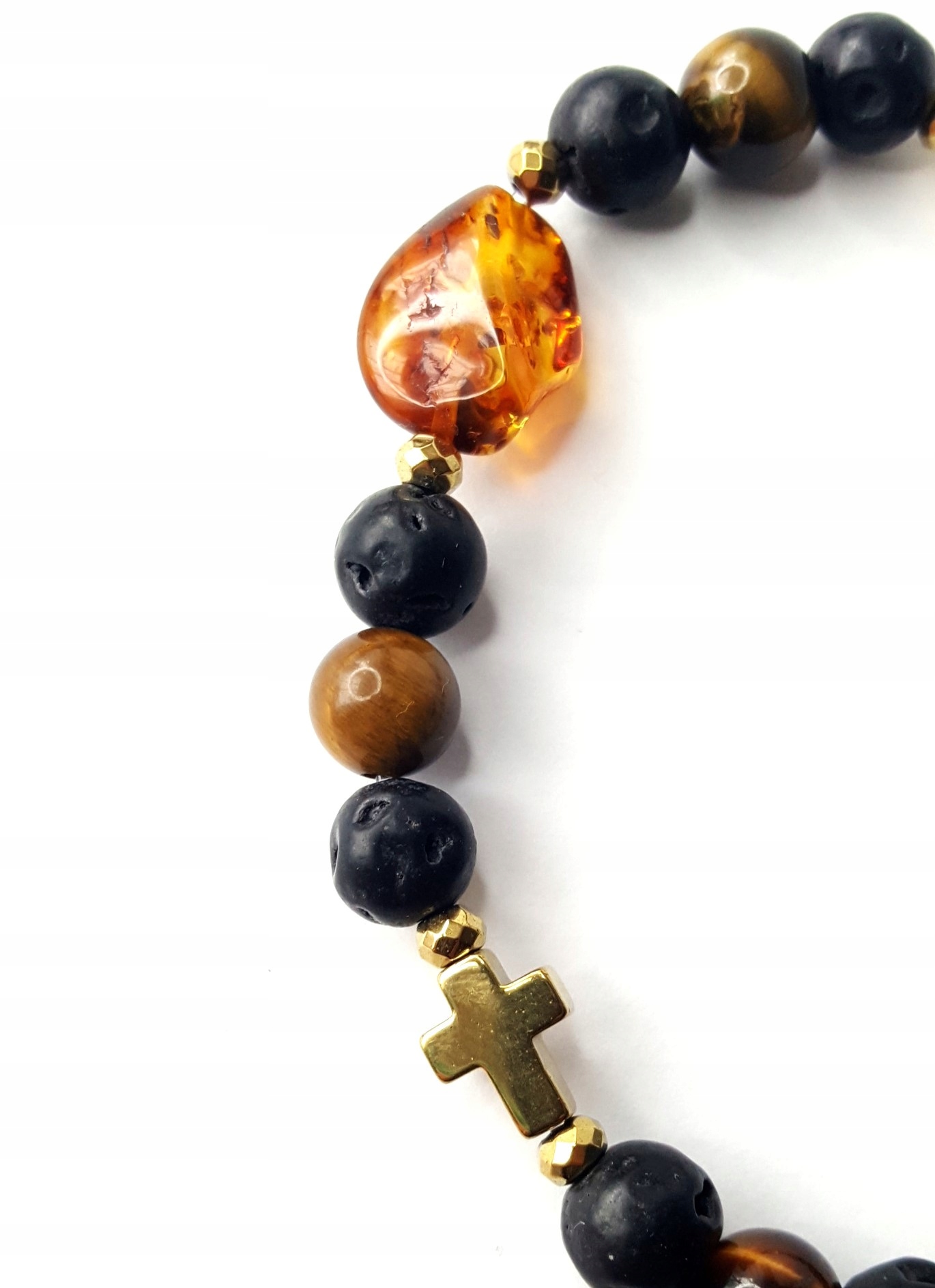 z prawdziwym BURSZTYNEM, LAWĄ wulkaniczną, HEMATYTEM oraz TYGRYSIM OKIEM.