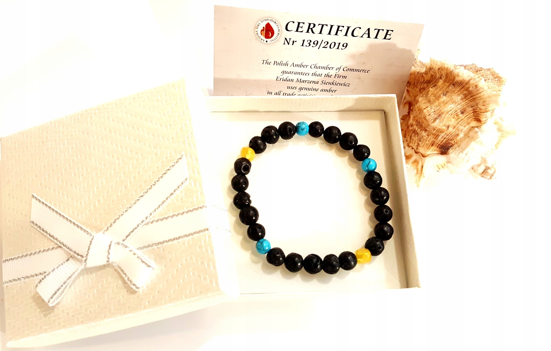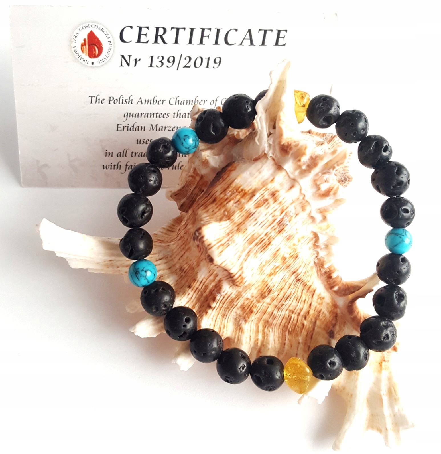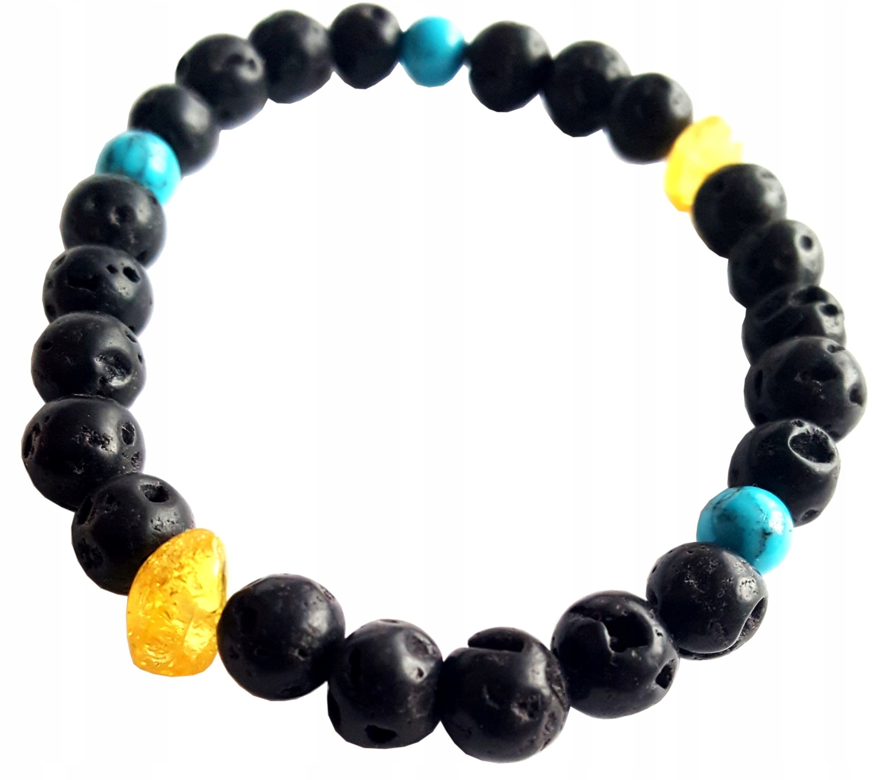 Kolor koralików bursztynowych jak i lawy wulkanicznej może różnić się od przedstawionego na zdjęciu.