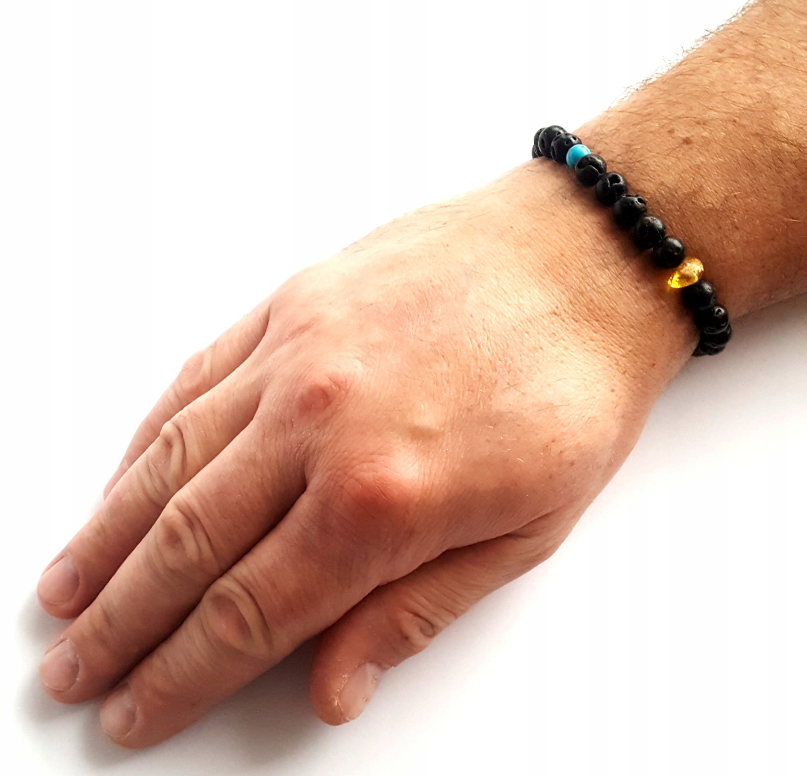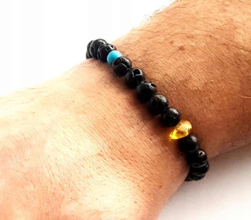 Kolor koralików bursztynowych jak i lawy wulkanicznej może różnić się od przedstawionego na zdjęciu.