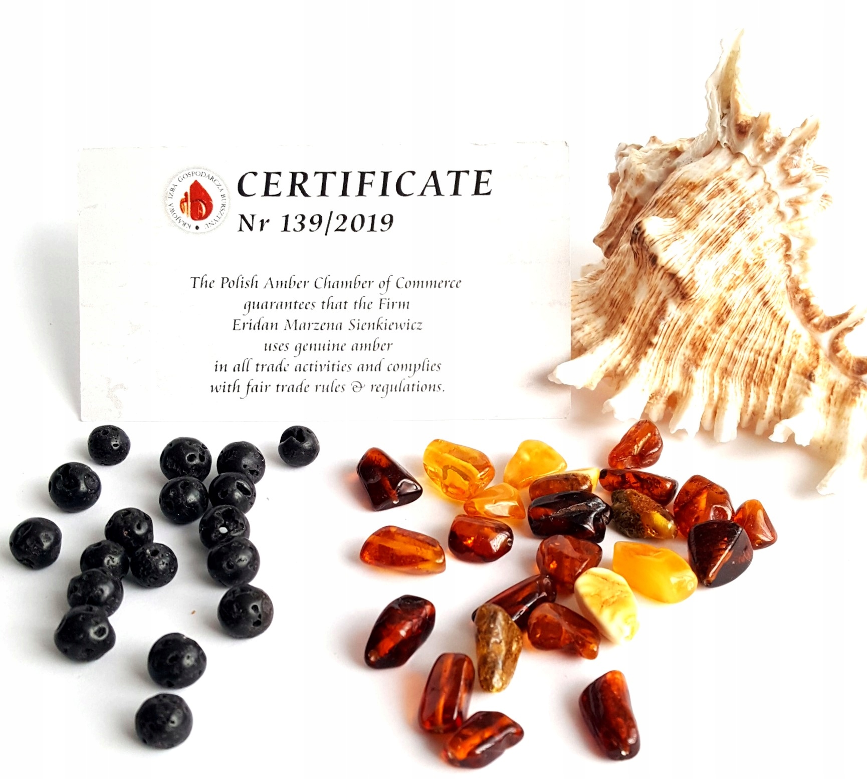 Zgodnie z posiadanym certyfikatem stosujemy w obrocie jedynie bursztyn prawdziwy.