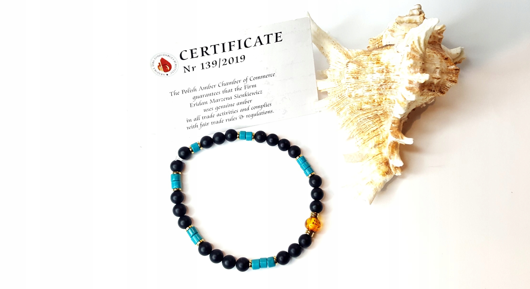 z prawdziwym BURSZTYNEM, ONYKSEM, HEMATYTEM oraz MAGNEZYTEM turkusowym.