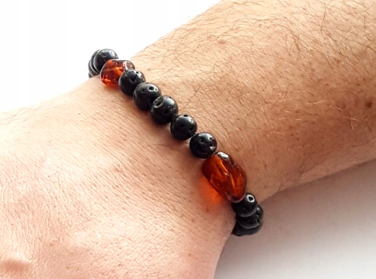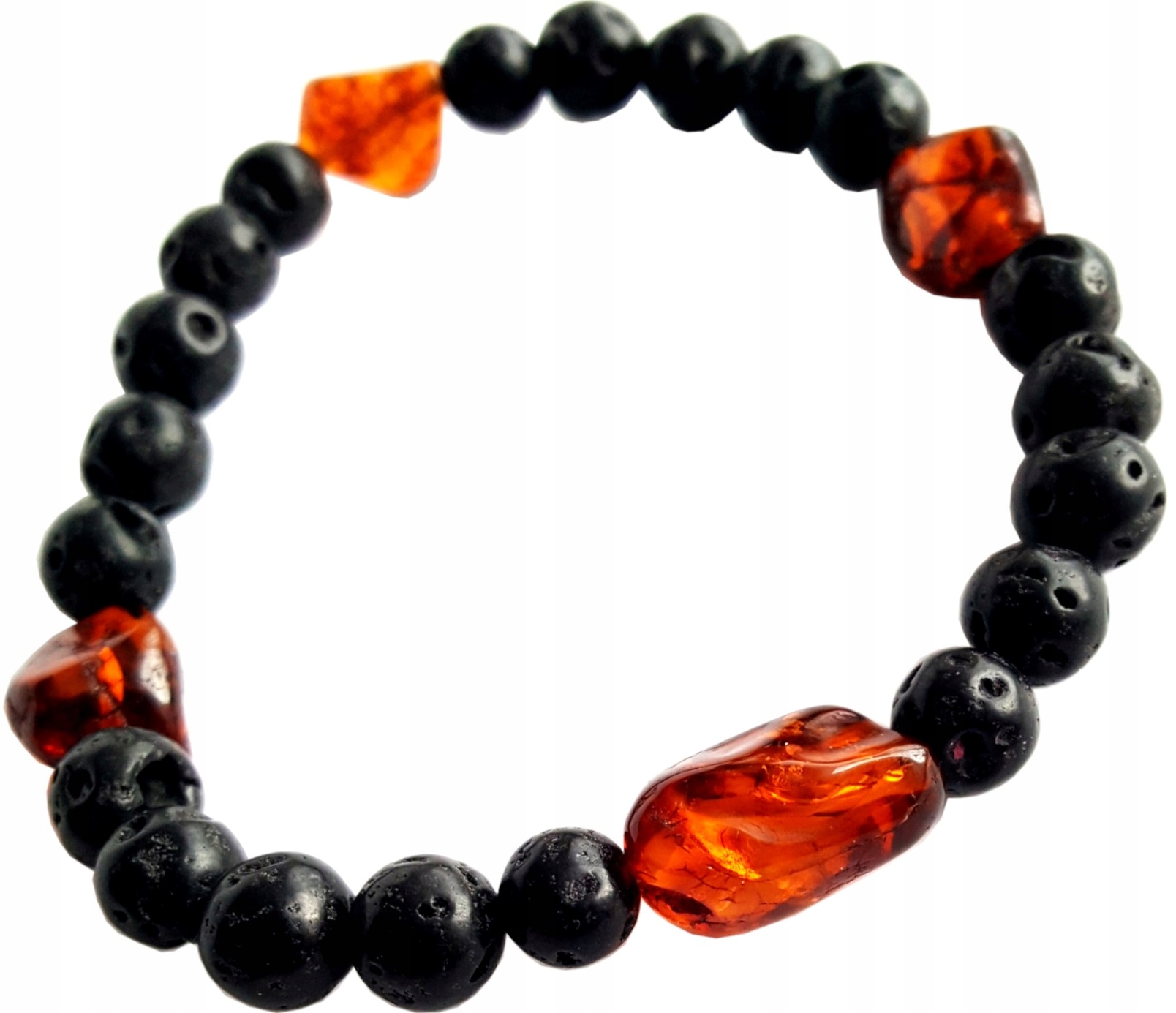 Kolor koralików bursztynowych jak i lawy wulkanicznej może różnić się od przedstawionego na zdjęciu.