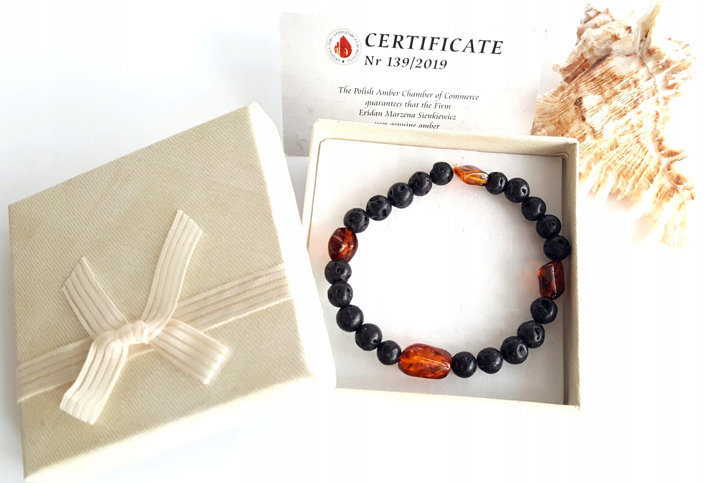 Oferowana bransoletka jest zupełnie nowa i jest wytwarzana przez nas w Naszej pracowni, z zachowaniem odpowiedniej staranności wykonania i doboru odpowiedniej jakości bursztynu. Koraliki w bransoletce są zrobione z naturalnego bursztynu bałtyckiego i lawy.