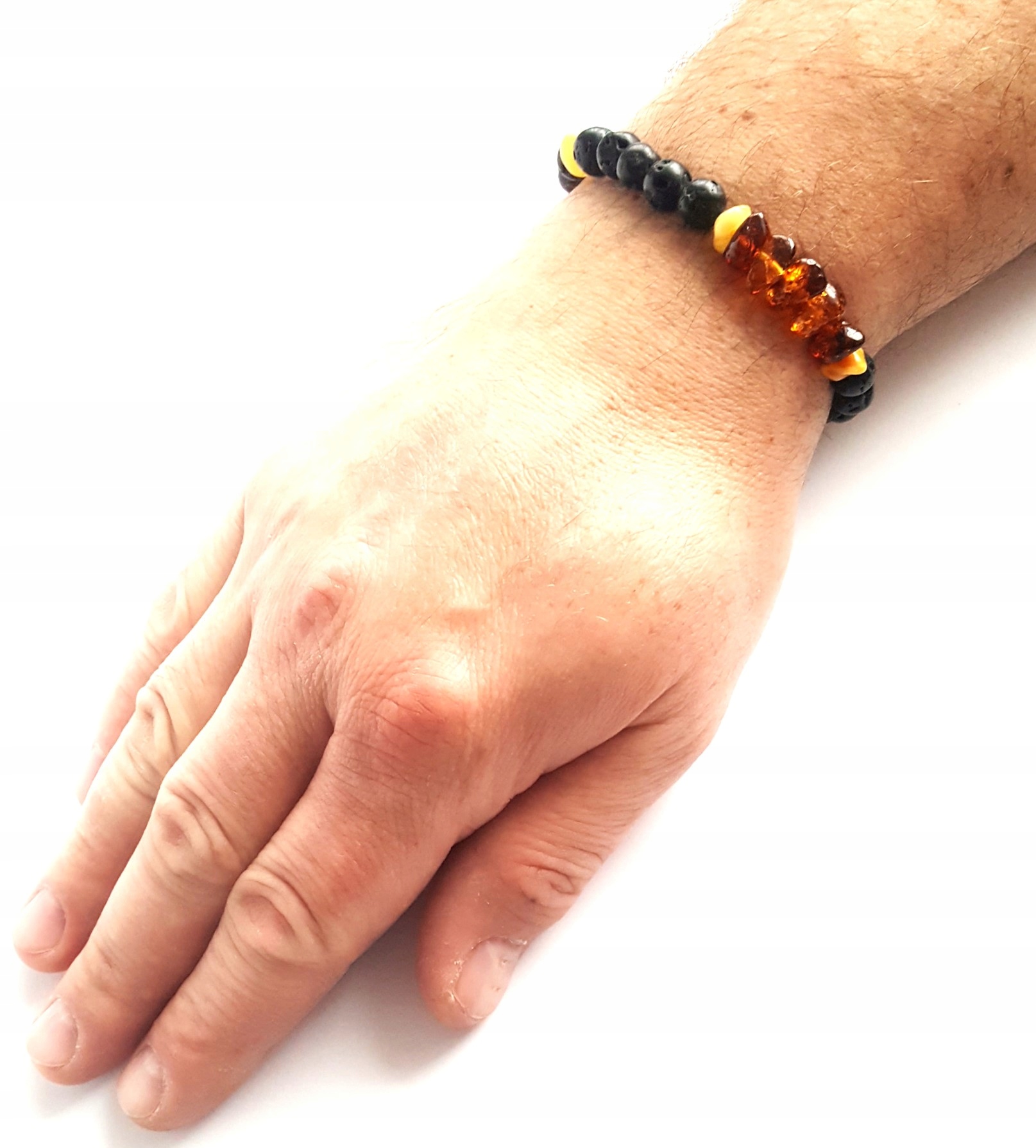 Kolor koralików bursztynowych jak i lawy wulkanicznej może różnić się od przedstawionego na zdjęciu.