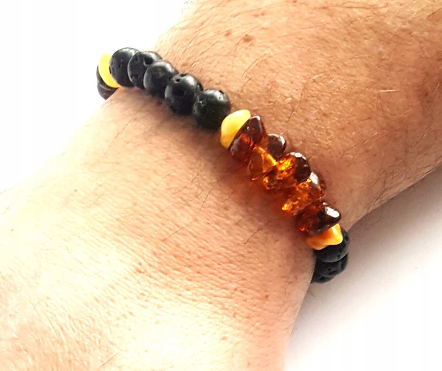 Oferowana bransoletka jest zupełnie nowa i jest wytwarzana przez nas w Naszej pracowni, z zachowaniem odpowiedniej staranności wykonania i doboru odpowiedniej jakości bursztynu. Koraliki w bransoletce są zrobione z naturalnego bursztynu bałtyckiego i lawy.
