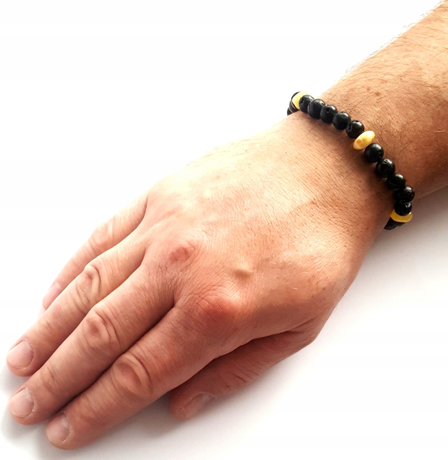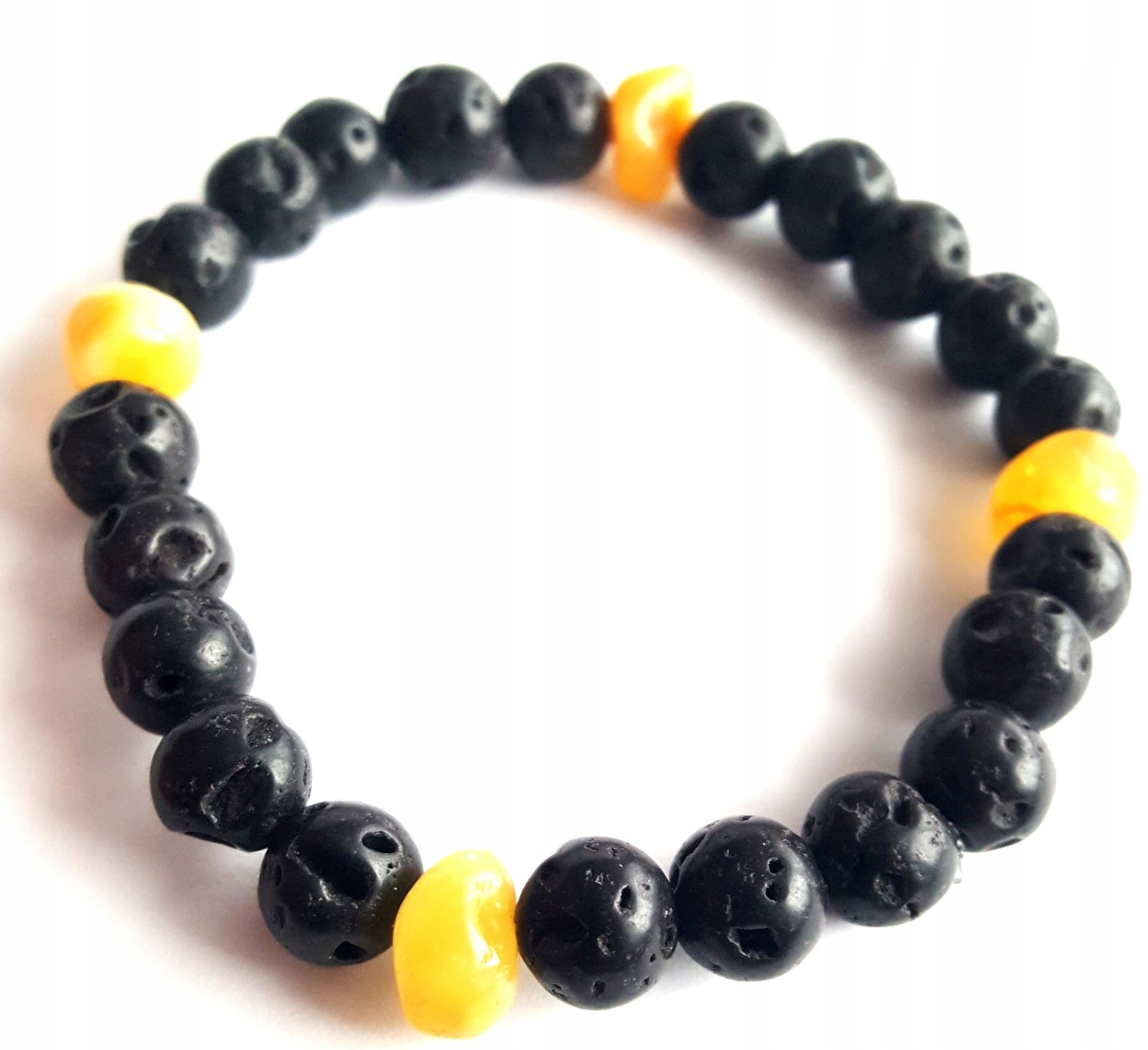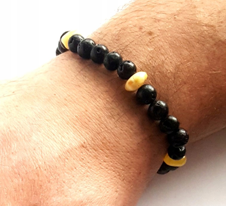 Kolor koralików bursztynowych jak i lawy wulkanicznej może różnić się od przedstawionego na zdjęciu.