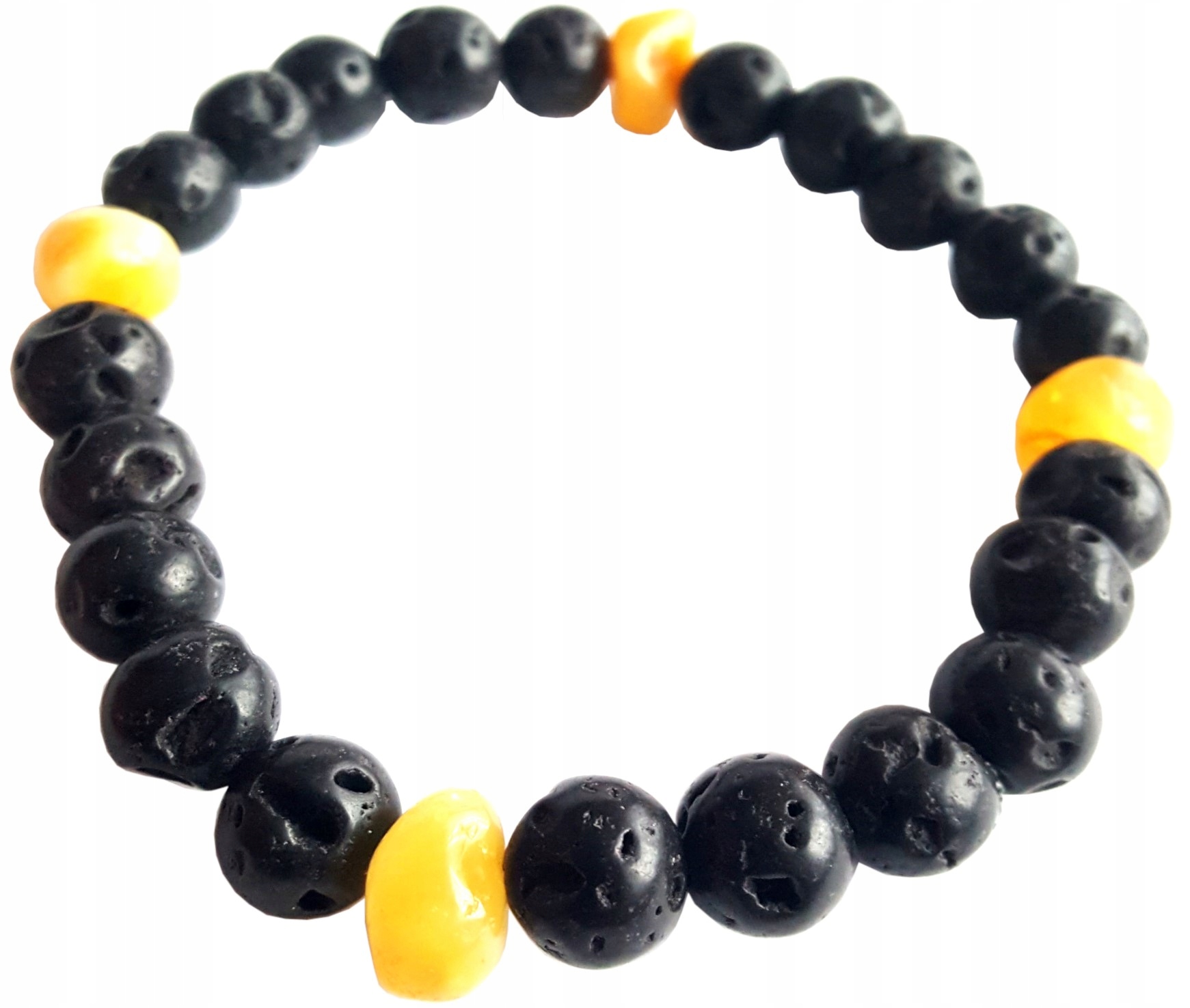 BRANSOLETKA z BURSZTYNEM (żółty) oraz LAWĄ WULKANICZNĄ