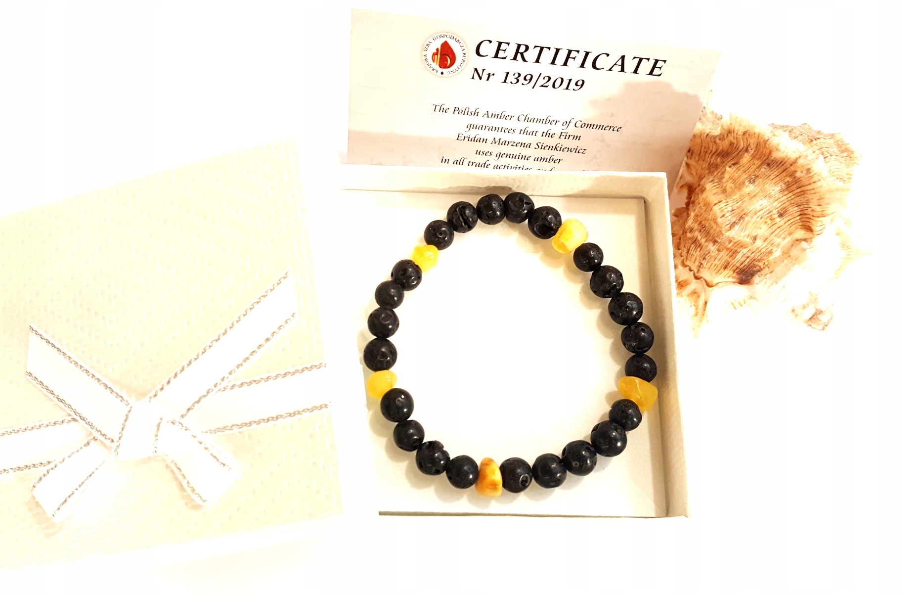 Kupując Naszą bransoletkę z bursztynem i lawą wulkaniczną możecie być Państwo pewni, że zostanie ona zapakowana w bardzo ładne pudełko jubilerskie. Zupełnie ZA DARMO. Pudełka wybieramy losowo, zawsze kierując się tym, aby idealnie pasowały do wybranej przez Państwa bransoletki.