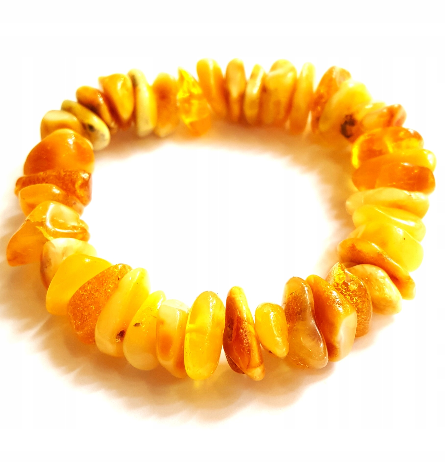 Oferujemy Państwu piękną i żółtą BRANSOLETKĘ Z NATURALNEGO BURSZTYNU (polerowanego) w kształcie NIEREGULARNYM.
