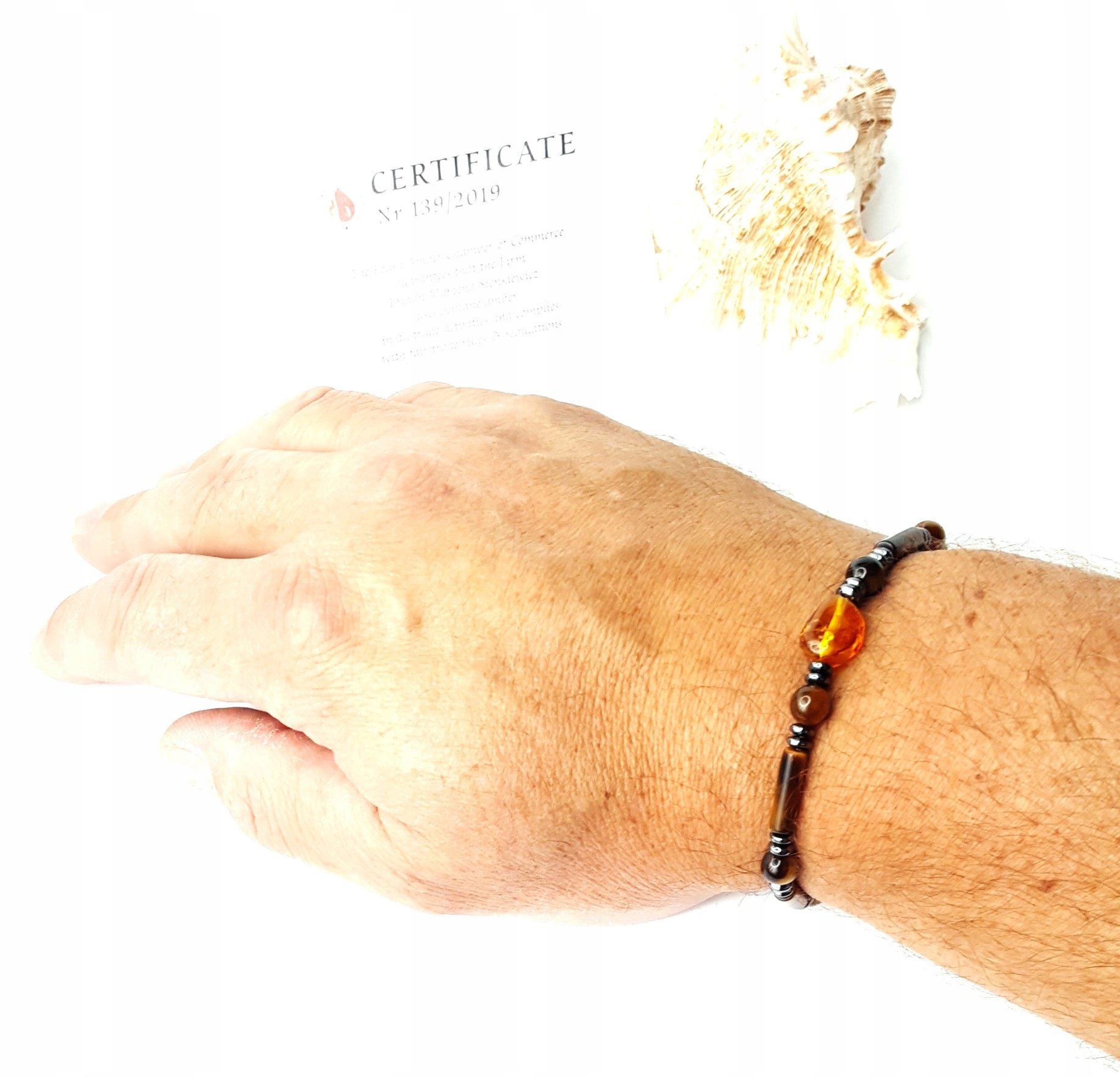 Oferowana bransoletka jest zupełnie nowa i jest wytwarzana przez nas w Naszej pracowni, z zachowaniem odpowiedniej staranności wykonania i doboru odpowiedniej jakości bursztynu. Koraliki w bransoletce są zrobione z prawdziwych kamieni-minerałów i akcentem naturalnego bursztynu bałtyckiego.