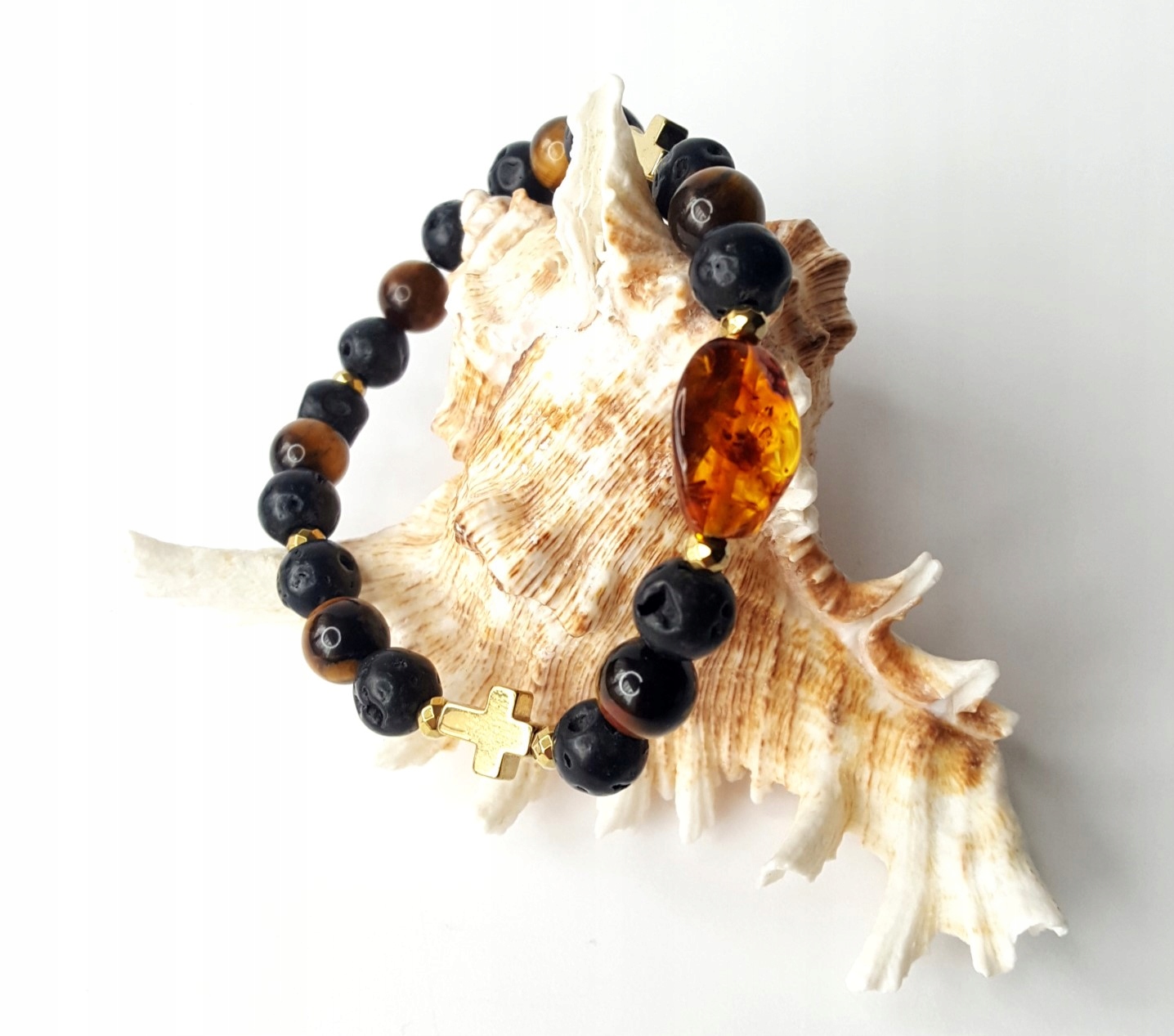 z prawdziwym BURSZTYNEM, LAWĄ wulkaniczną, HEMATYTEM oraz TYGRYSIM OKIEM.