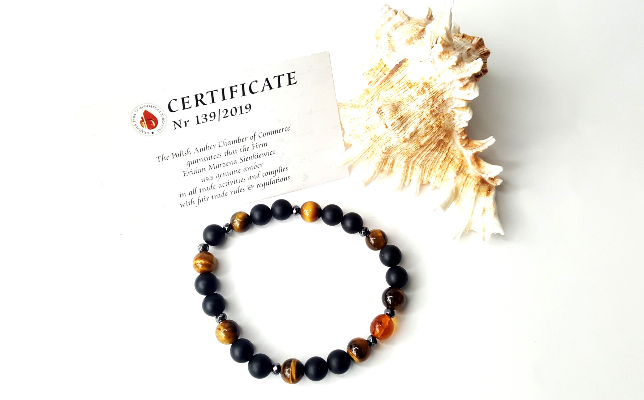 z prawdziwym BURSZTYNEM, ONYKSEM, HEMATYTEM oraz TYGRYSIM OKIEM.
