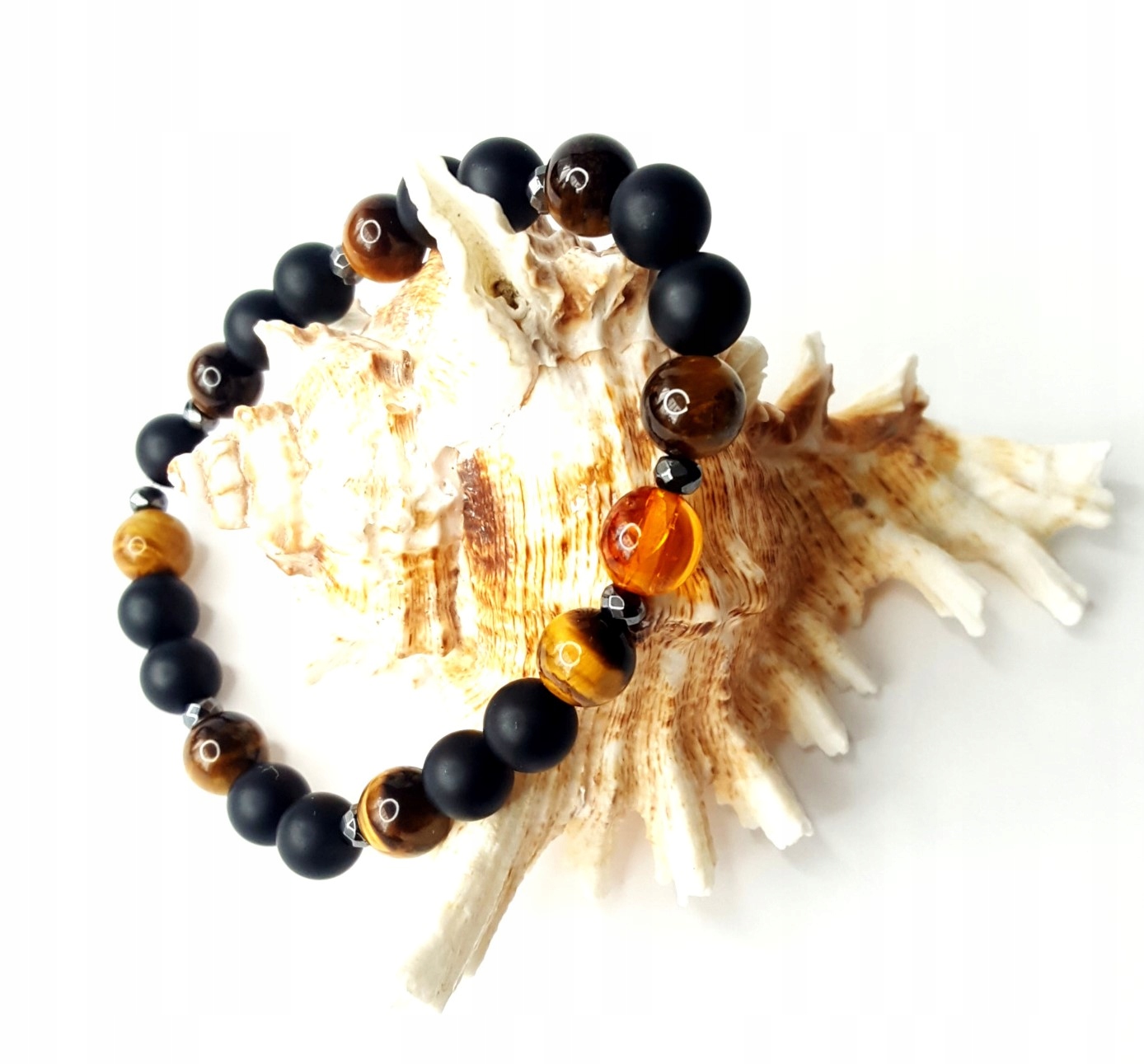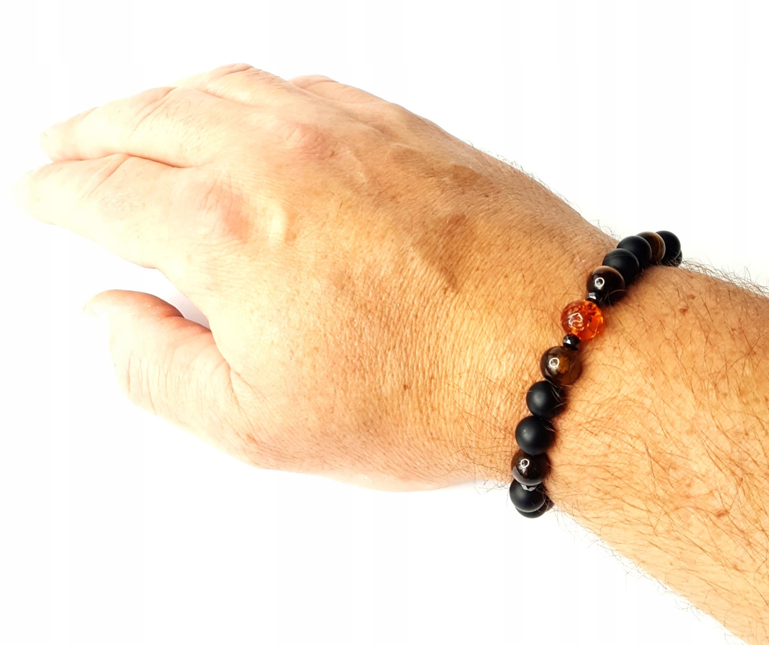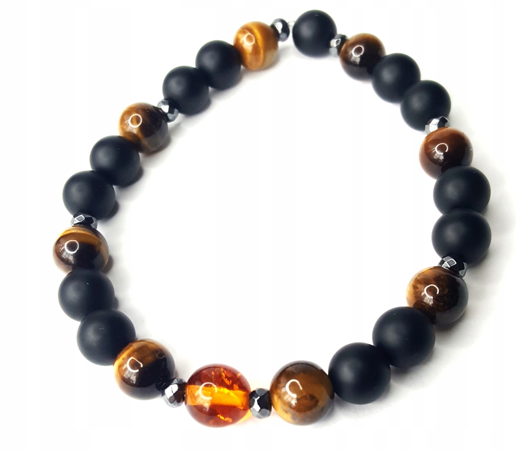 BRANSOLETKA męska ONYKS bursztyn TYGRYSIE OKO hematyt – 20cm