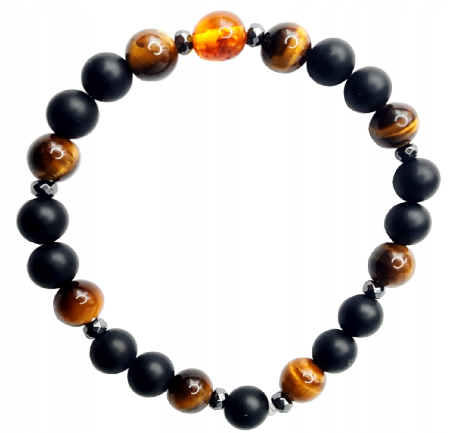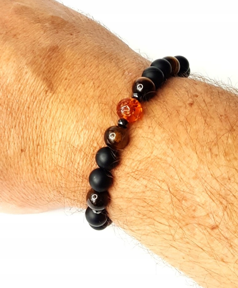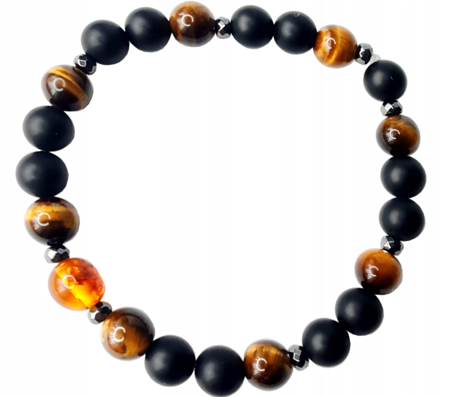 BRANSOLETKA męska ONYKS bursztyn TYGRYSIE OKO hematyt – 20cm