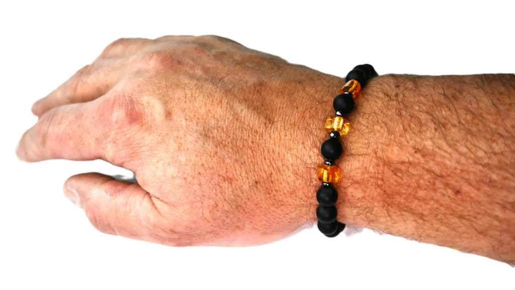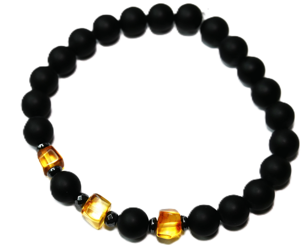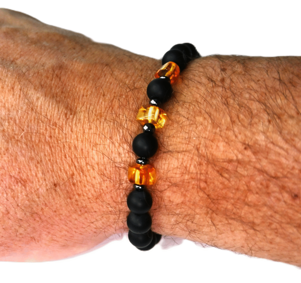* BRANSOLETKA męska z BURSZTYNEM i minerałami *