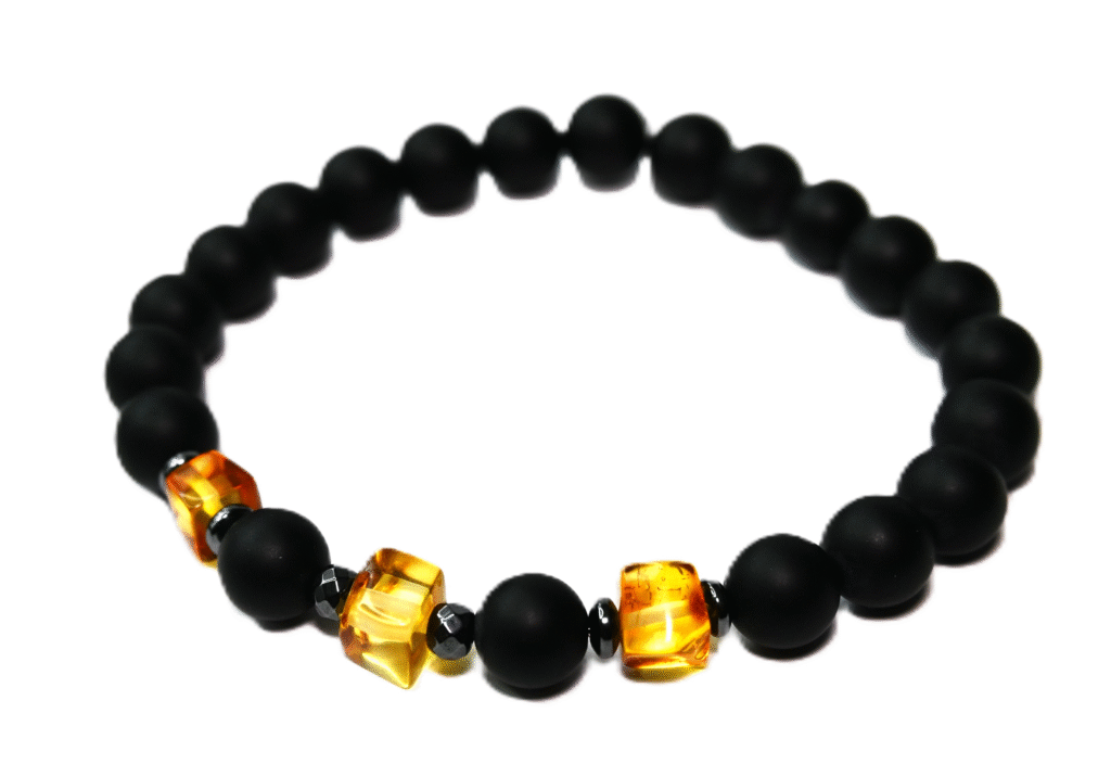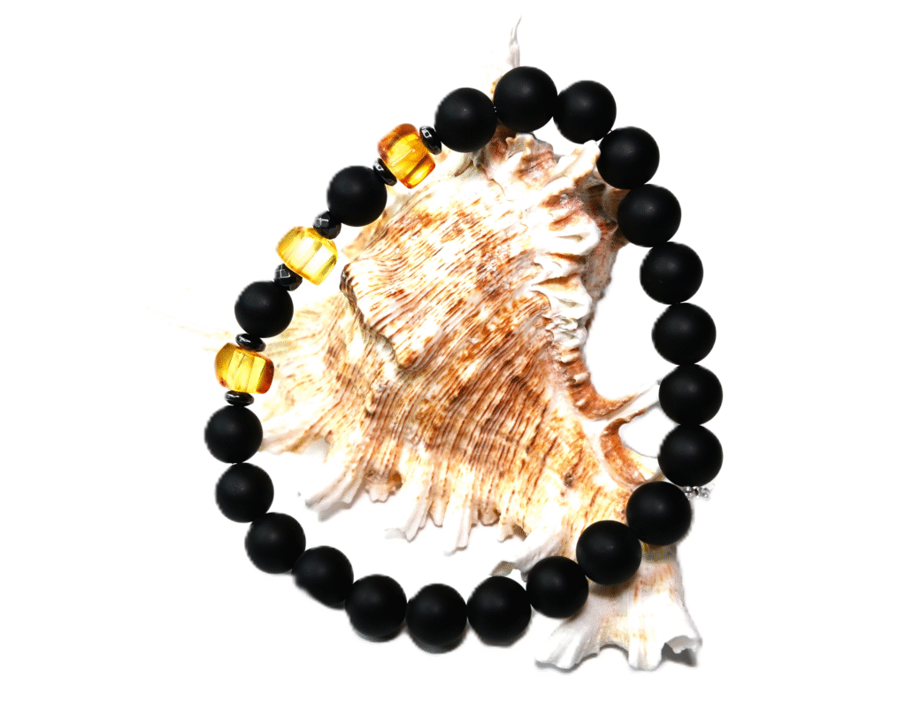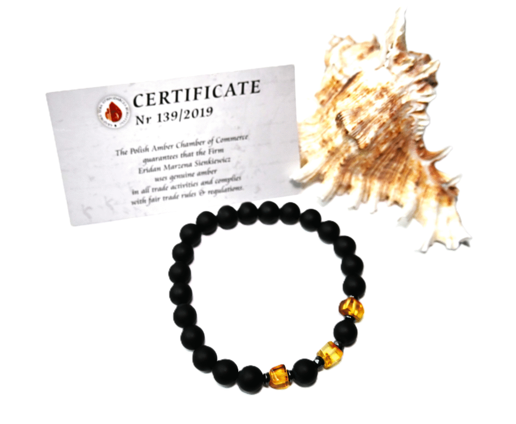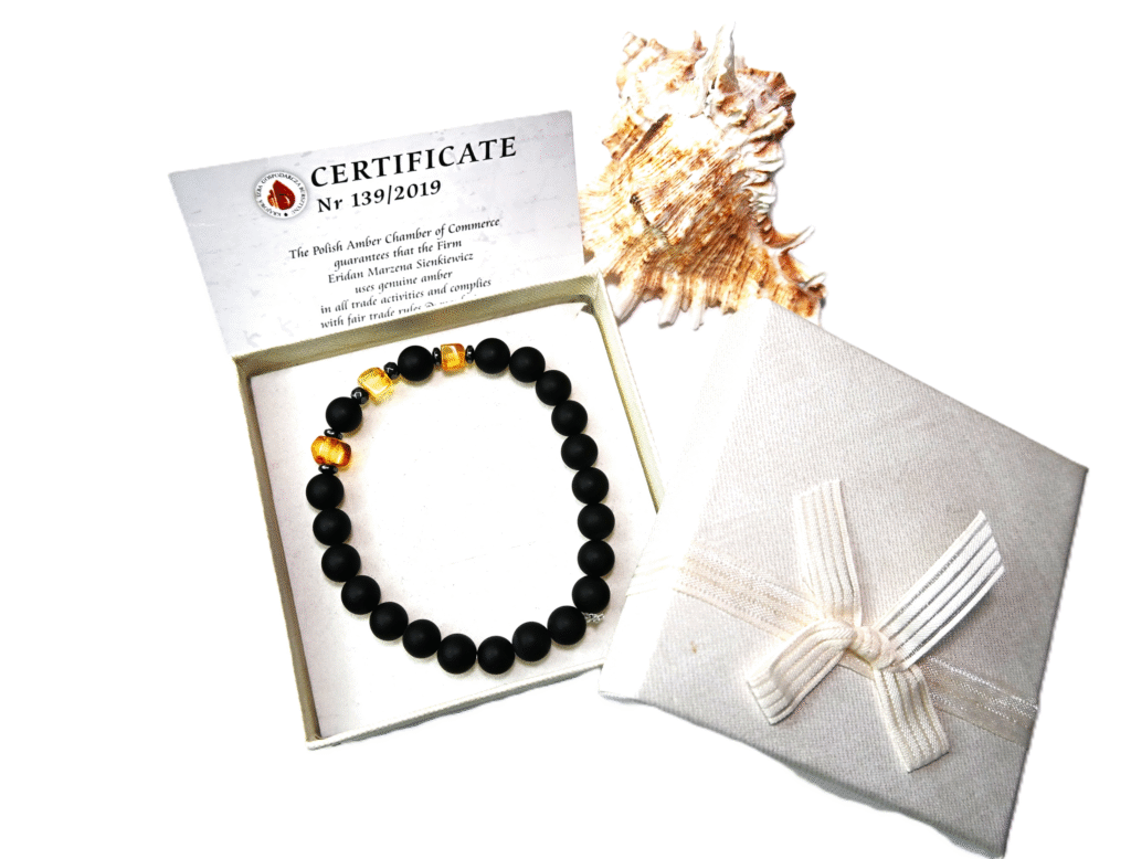 z ONYKSEM, HEMATYTEM oraz prawdziwym BURSZTYNEM