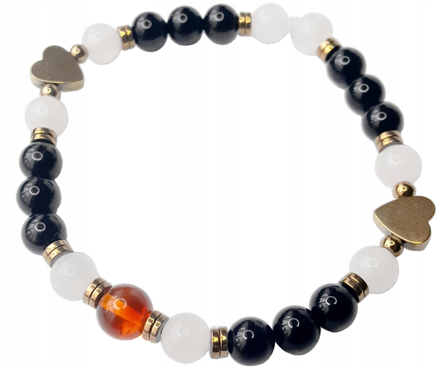 Oferowana bransoletka jest zupełnie nowa i jest wytwarzana przez nas w Naszej pracowni, z zachowaniem odpowiedniej staranności wykonania i doboru odpowiedniej jakości bursztynu. Koraliki w bransoletce są zrobione z naturalnego bursztynu bałtyckiego i minerałów (onyks, kwarc różowy, hematyt).