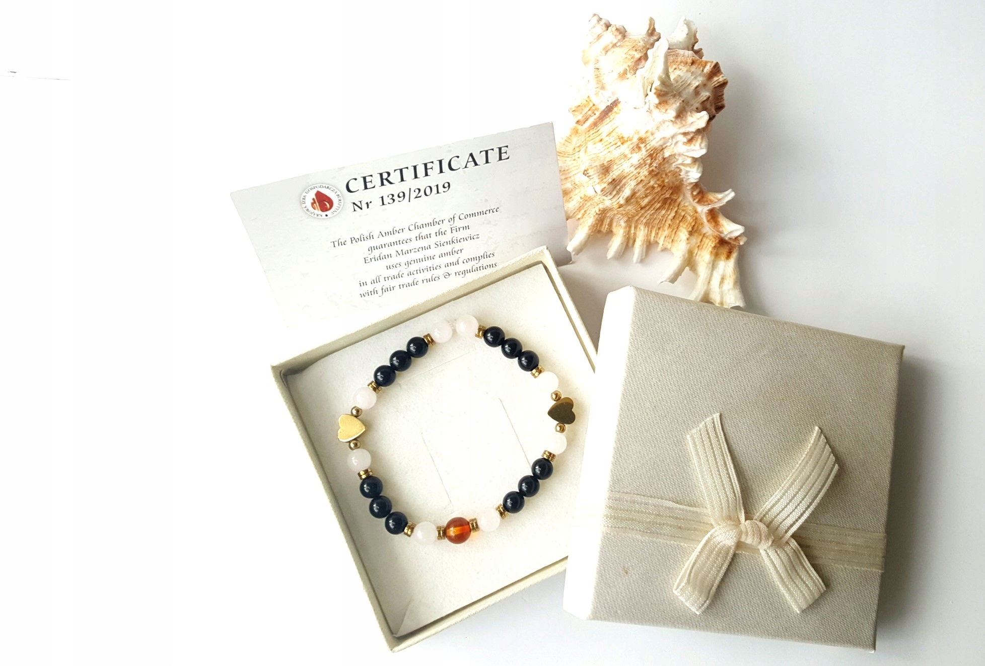 Kupując Naszą bransoletkę z bursztynem i minerałami możecie być Państwo pewni, że zostanie ona zapakowana w bardzo ładne pudełko jubilerskie. Zupełnie ZA DARMO. Pudełka wybieramy losowo, zawsze kierując się tym, aby idealnie pasowały do wybranej przez Państwa bransoletki.