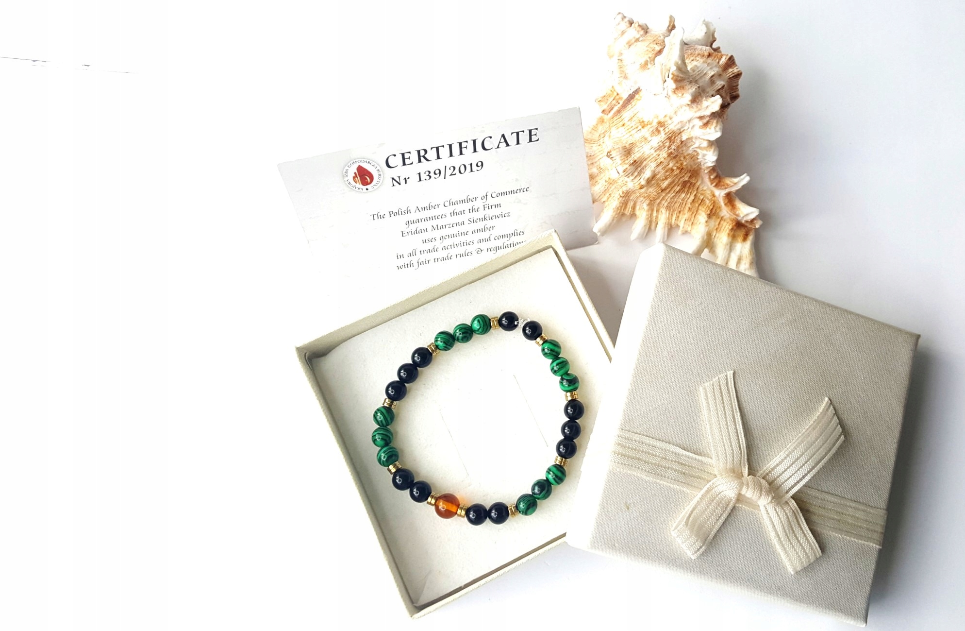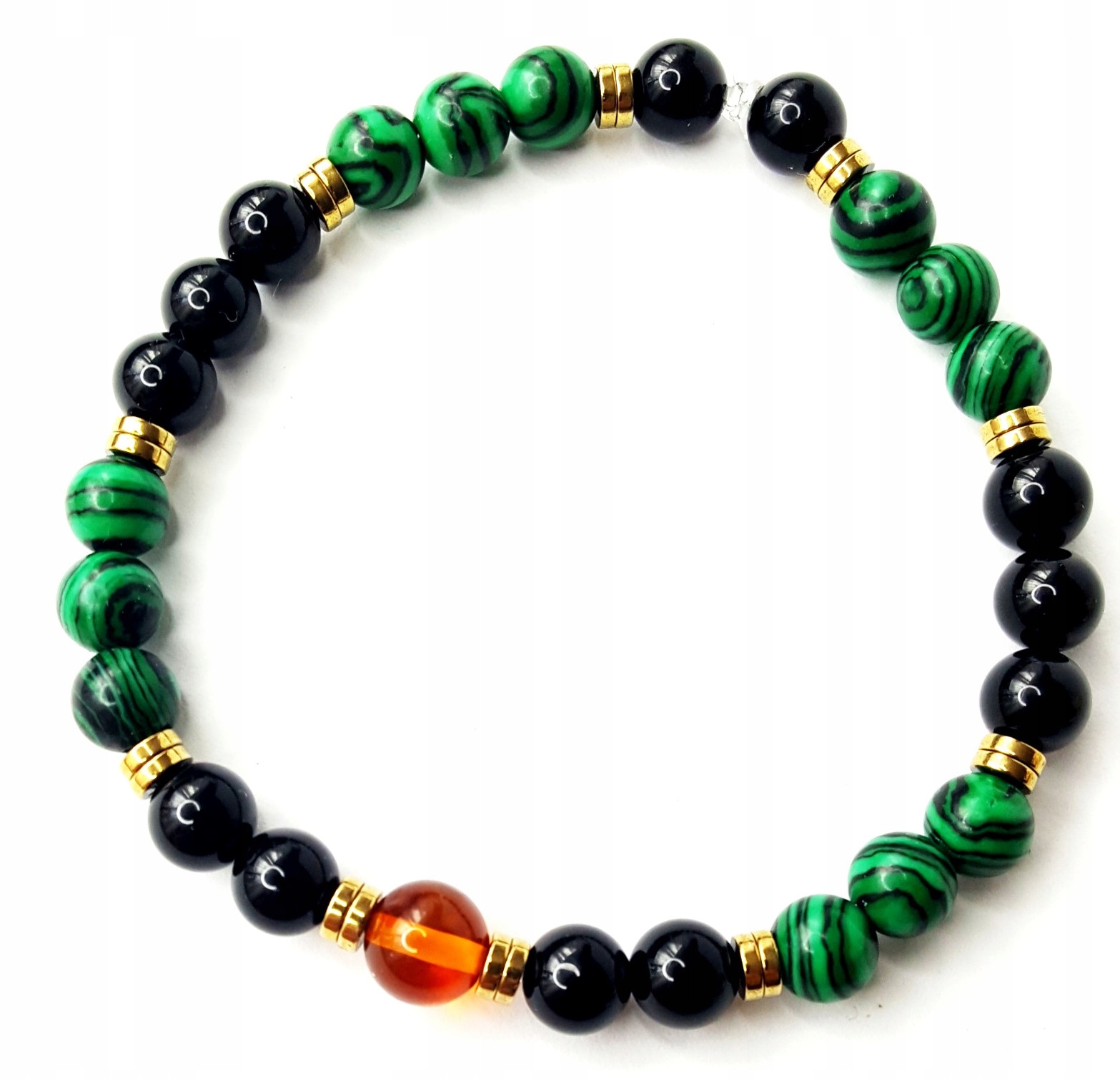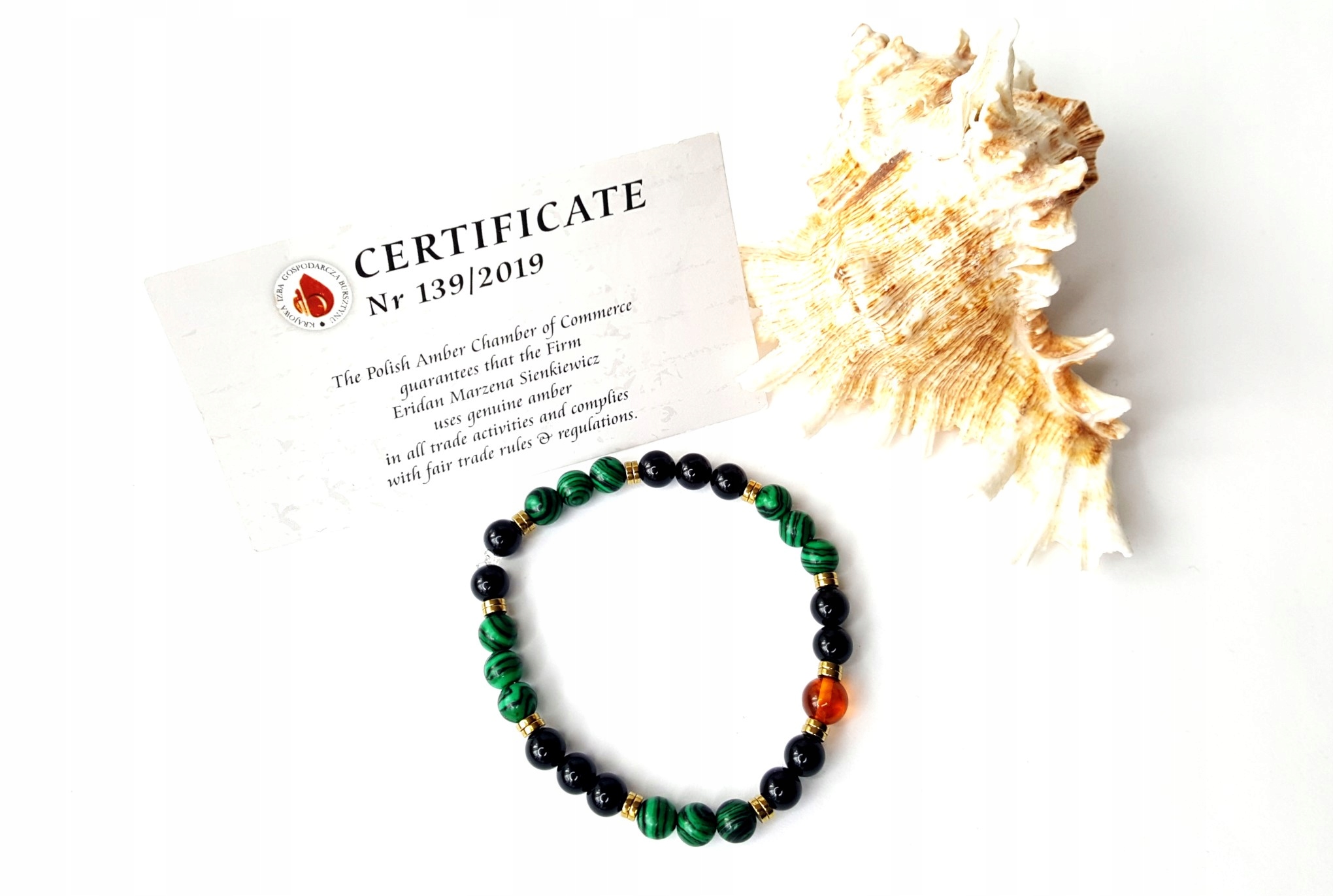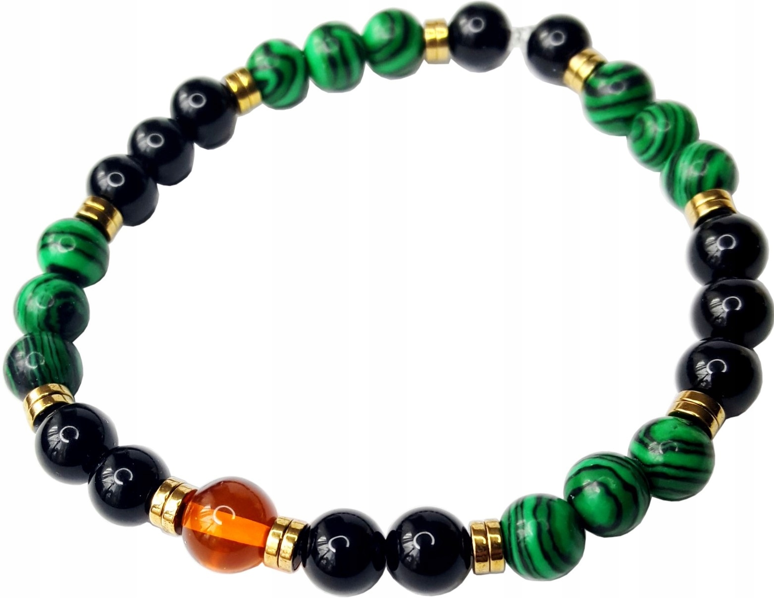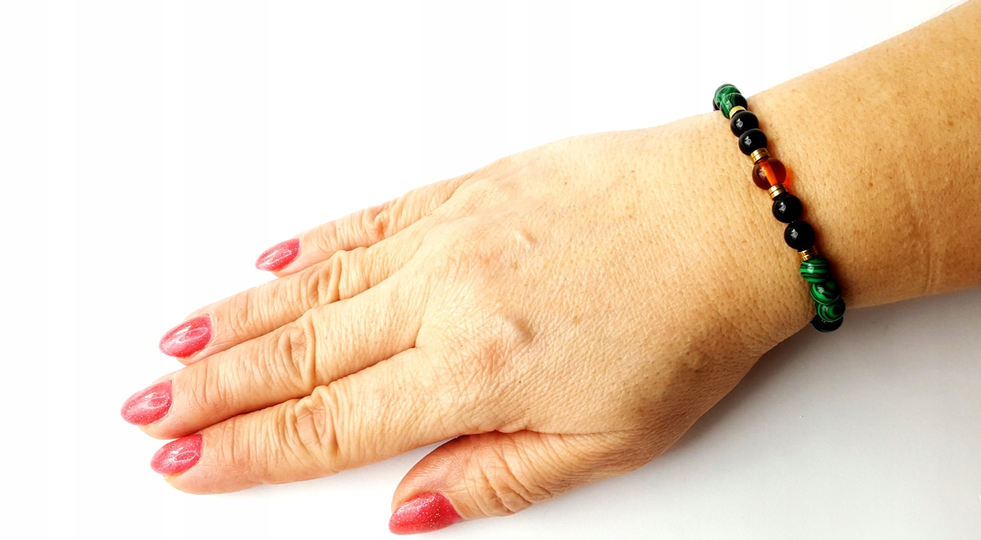 BRANSOLETKA onyks BURSZTYN hematyt MALACHIT 17,5 cm +certyfikat