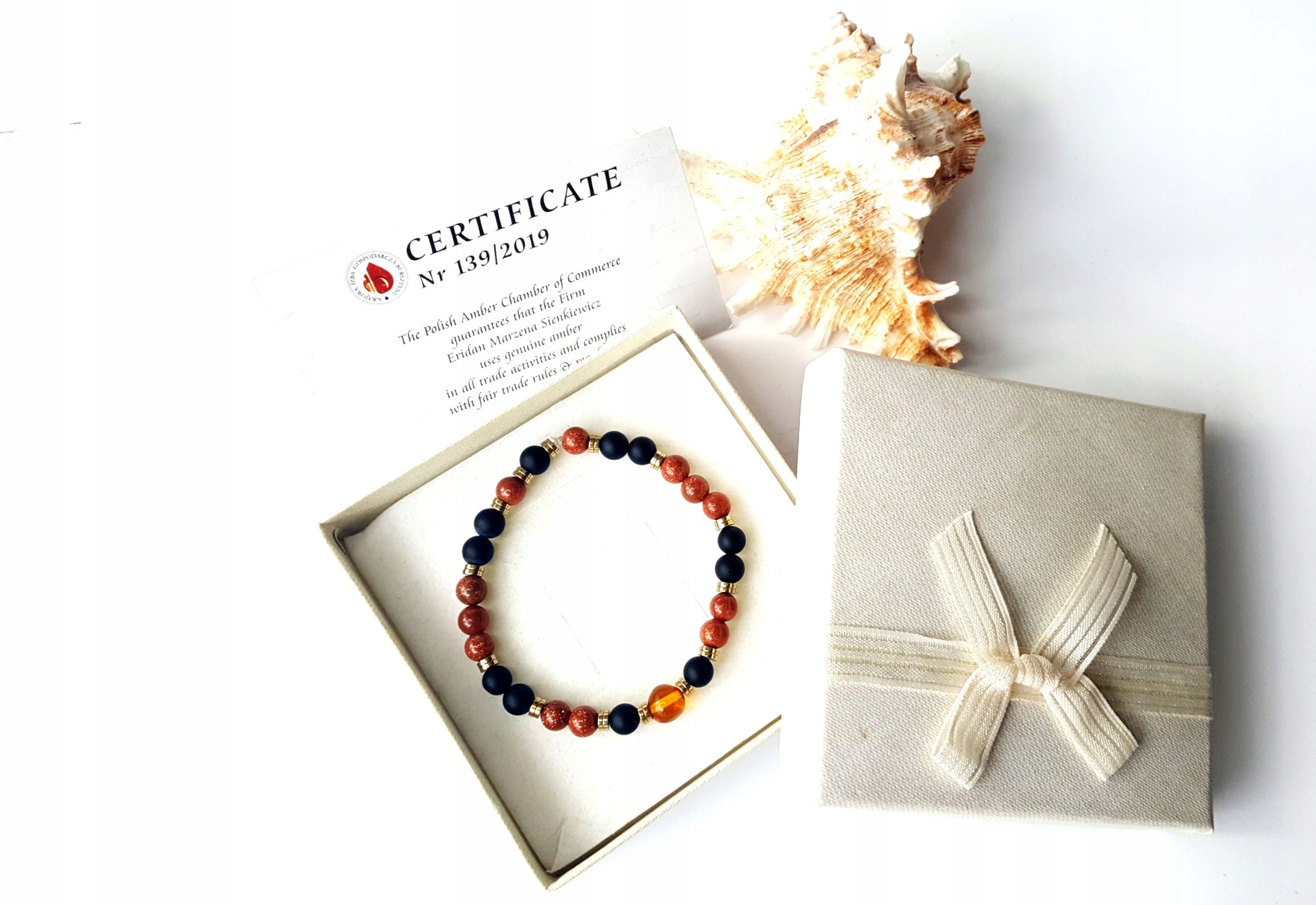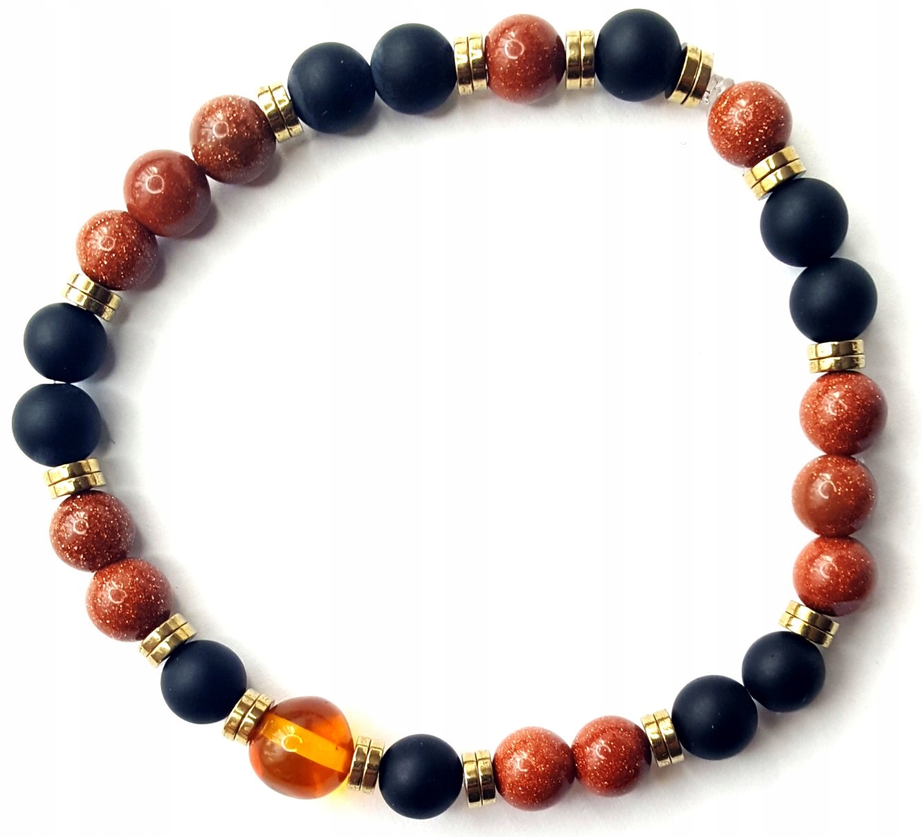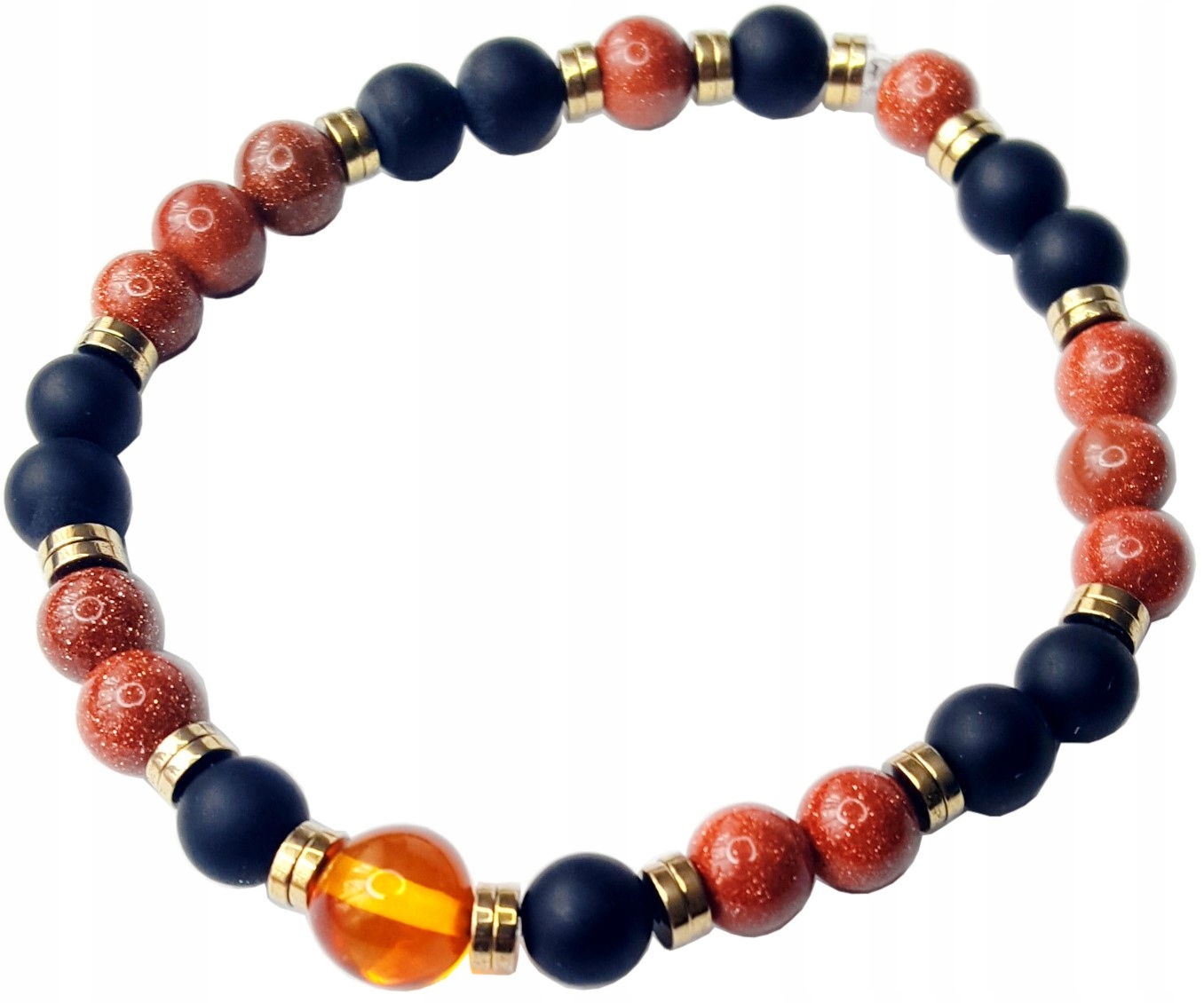BRANSOLETKA onyks BURSZTYN hematyt PIASEK PUSTYNI 17,5 cm +certyf.