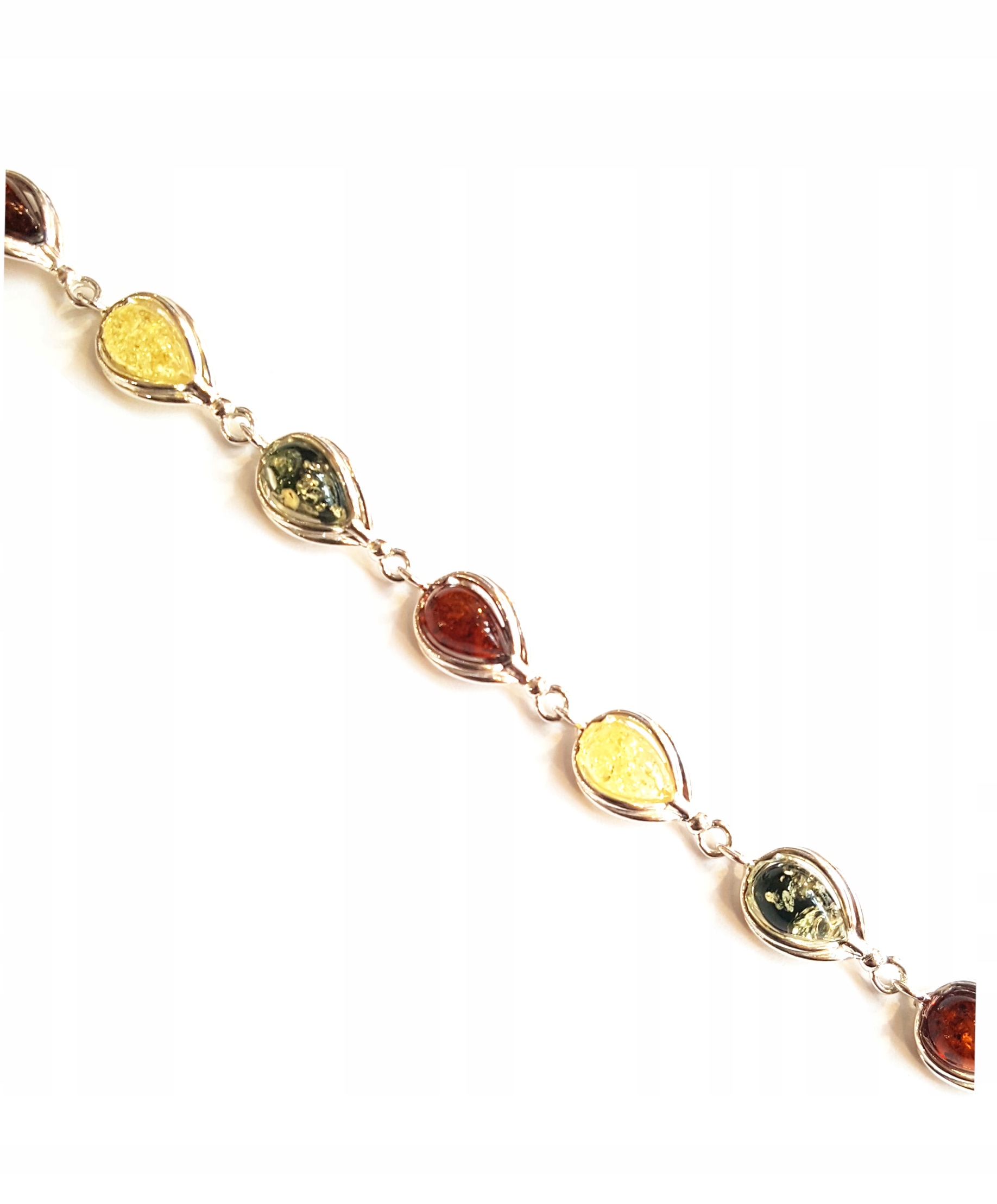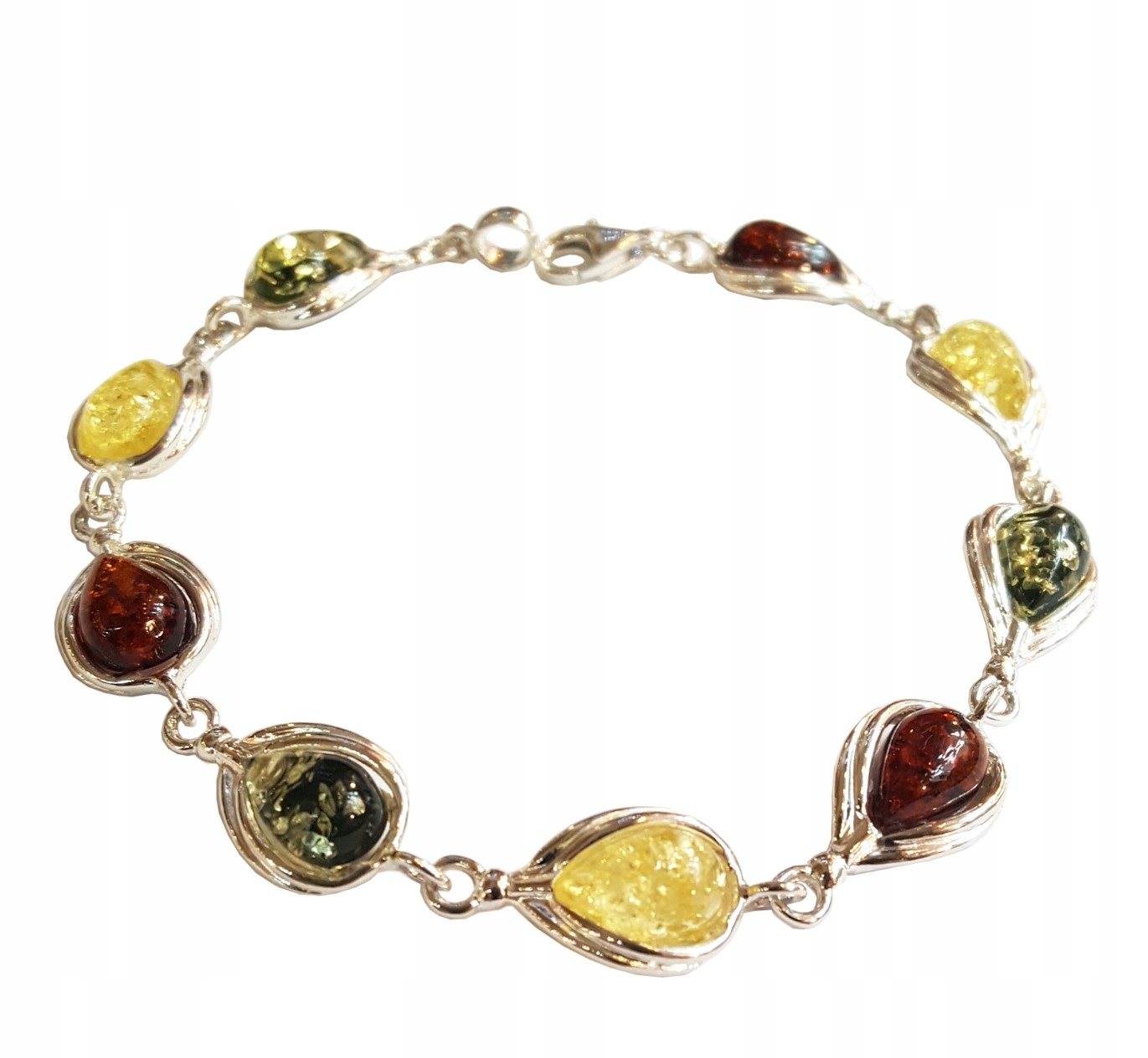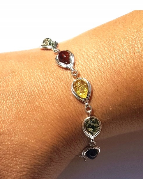 Elegancka BRANSOLETKA SREBRNA 925 z BURSZTYNEM. Nowoczesność i oryginalność. Kolorowy BURSZTYN naturalny