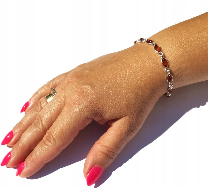 Oferujemy Państwu wyjątkową bransoletkę srebrną pr. 925 z bursztynem.