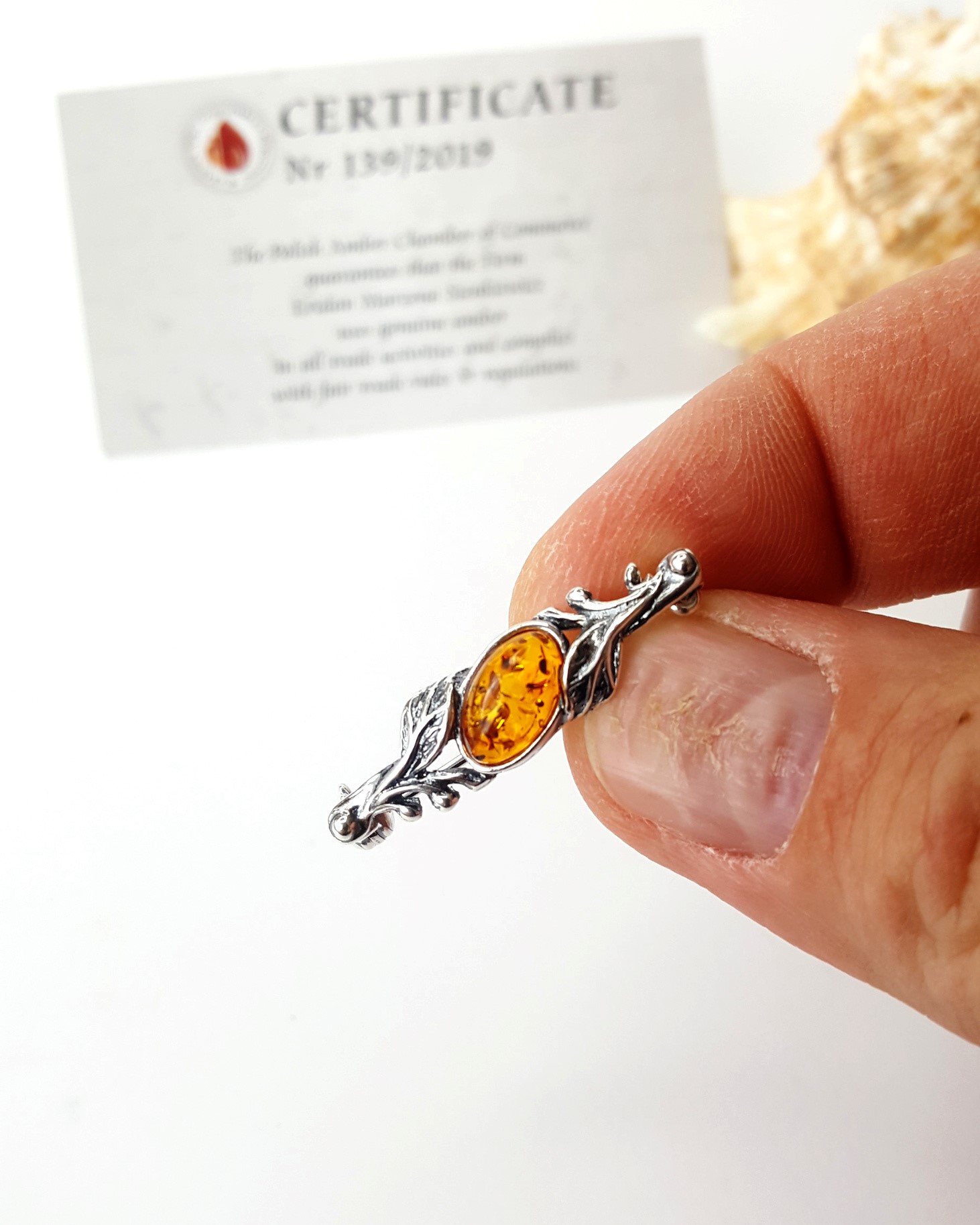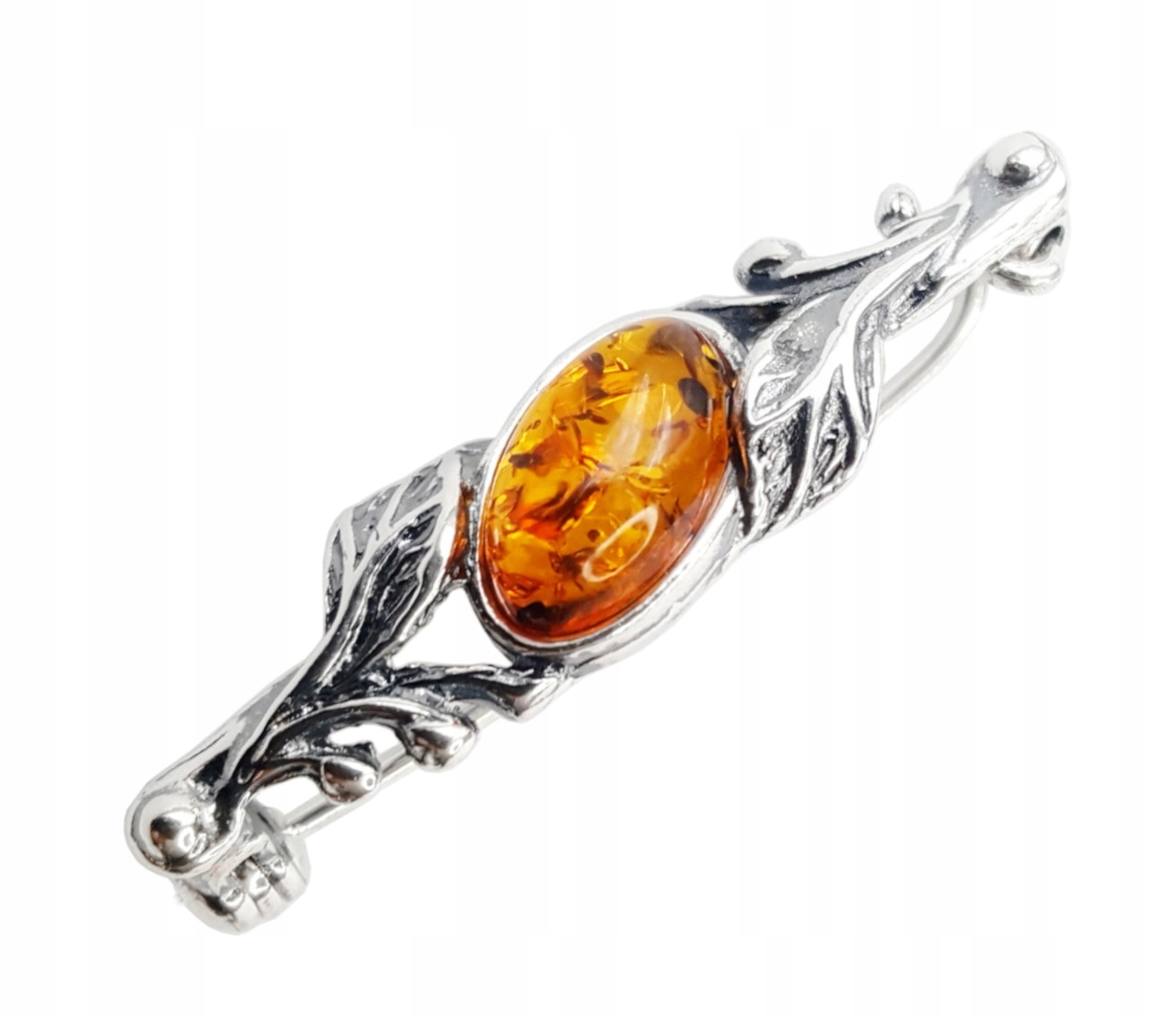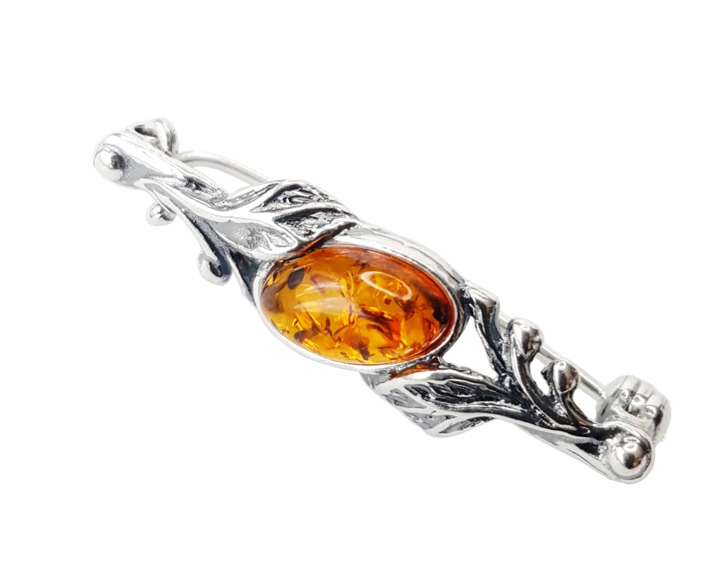 *** BROSZKA SREBRNA z PRAWDZIWYM BURSZTYNEM ***