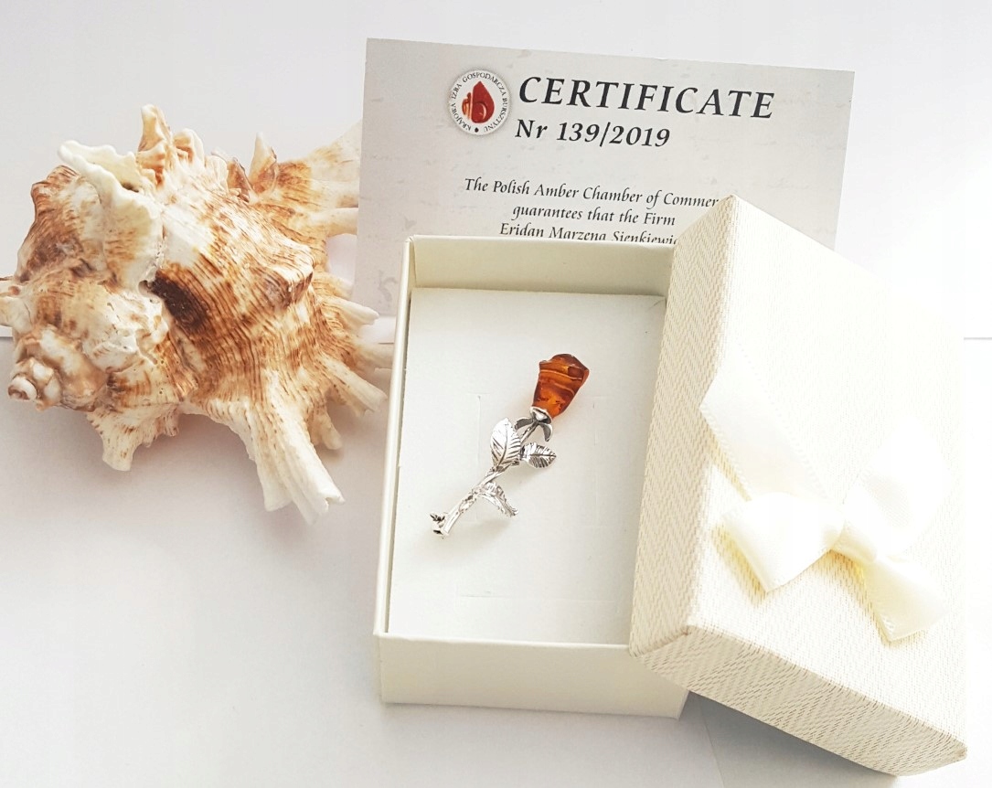 Kupując Naszą srebrną broszkę z bursztynem możecie być Państwo pewni, że zostanie ona zapakowana w bardzo ładne pudełko jubilerskie. Zupełnie za darmo. Pudełka wybieramy losowo, zawsze kierując się tym, aby idealnie pasowały do wybranej przez Państwa broszki.