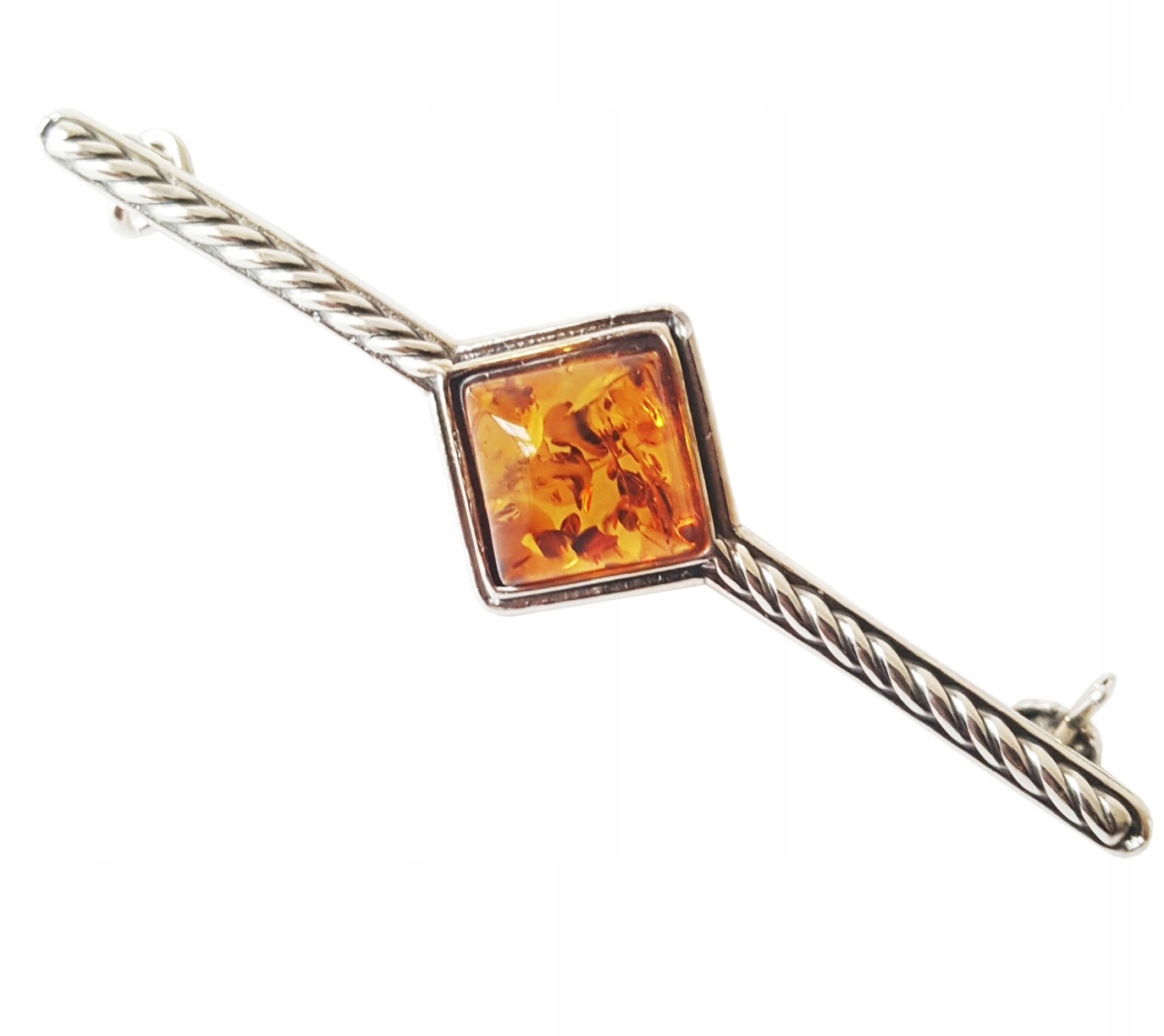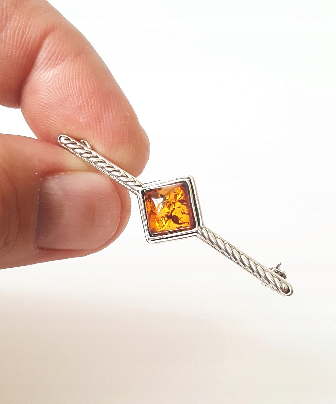 BROSZKA SREBRNA Z BURSZTYNEM