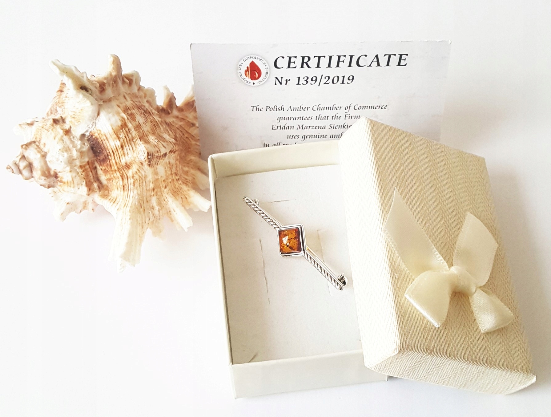 BROSZKA SREBRNA Z BURSZTYNEM *NA PREZENT* +CERTYF.