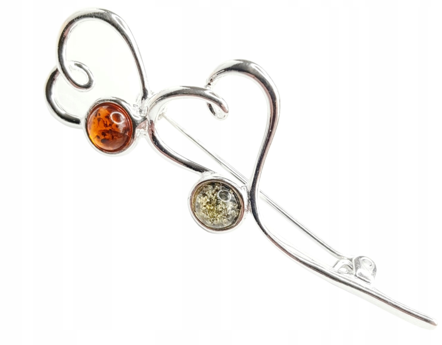 Oferujemy Państwu piękną BROSZKĘ srebrną z kolorowym BURSZTYNEM.