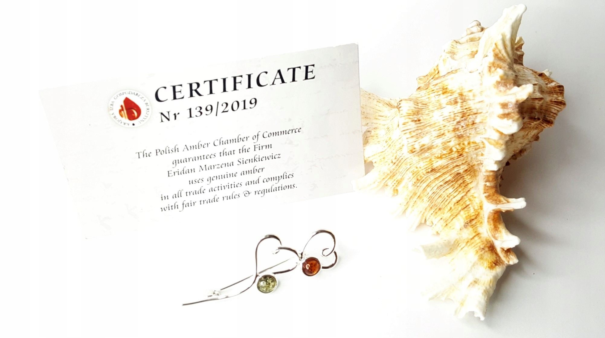 *** Naturalny i prawdziwy BURSZTYN *** SREBRO 925 *** CERTYFIKAT AUTENTYCZNOŚCI ***