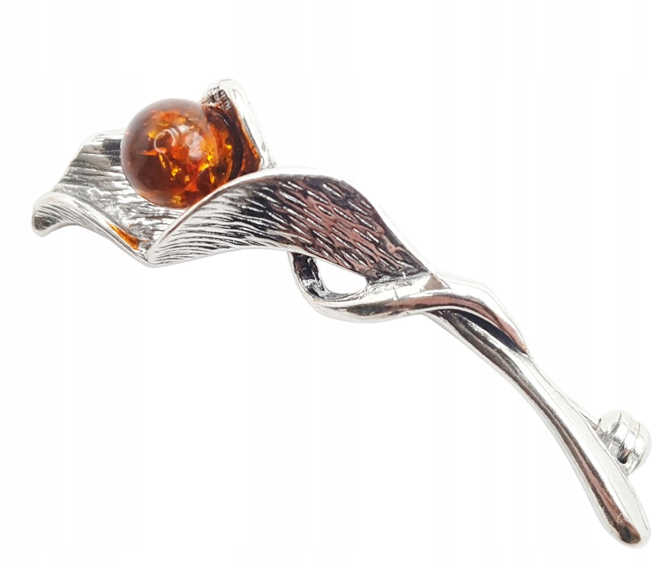 Oferujemy Państwu piękną BROSZKĘ srebrną z BRĄZOWYM BURSZTYNEM.