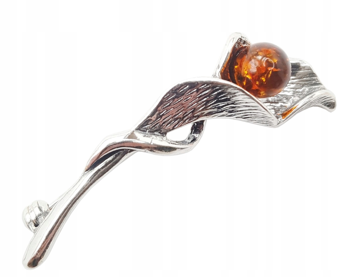 *** BROSZKA SREBRNA z PRAWDZIWYM BURSZTYNEM ***