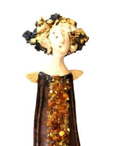 Oferujemy Państwu pięknego, ręcznie wykonanego ANIOŁA ceramicznego z BURSZTYNEM o nieregularnych kształtach