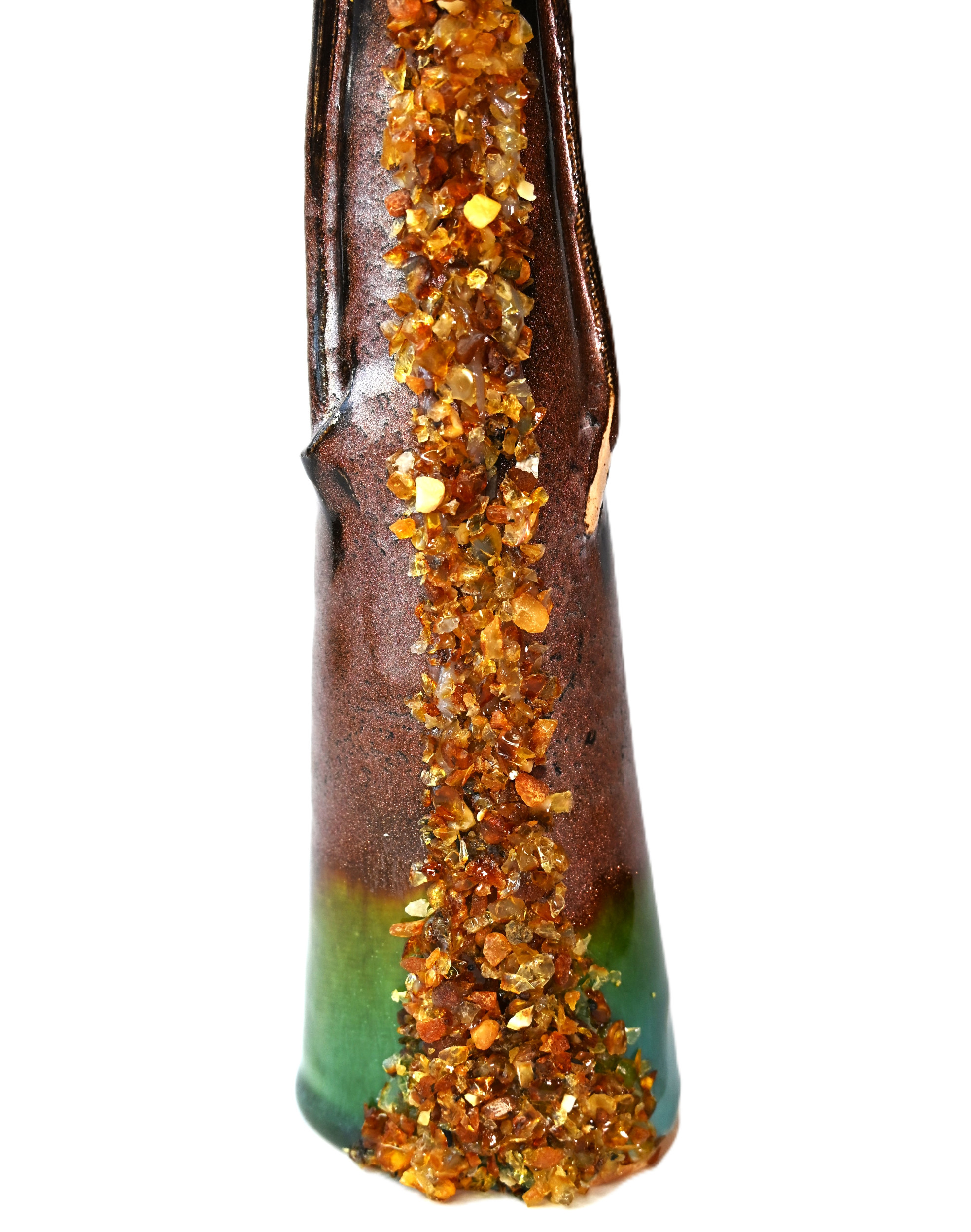 Odcień elementów bursztynowych jest różnobarwny. Bursztyn został połączony specjalnym, jubilerskim klejem.