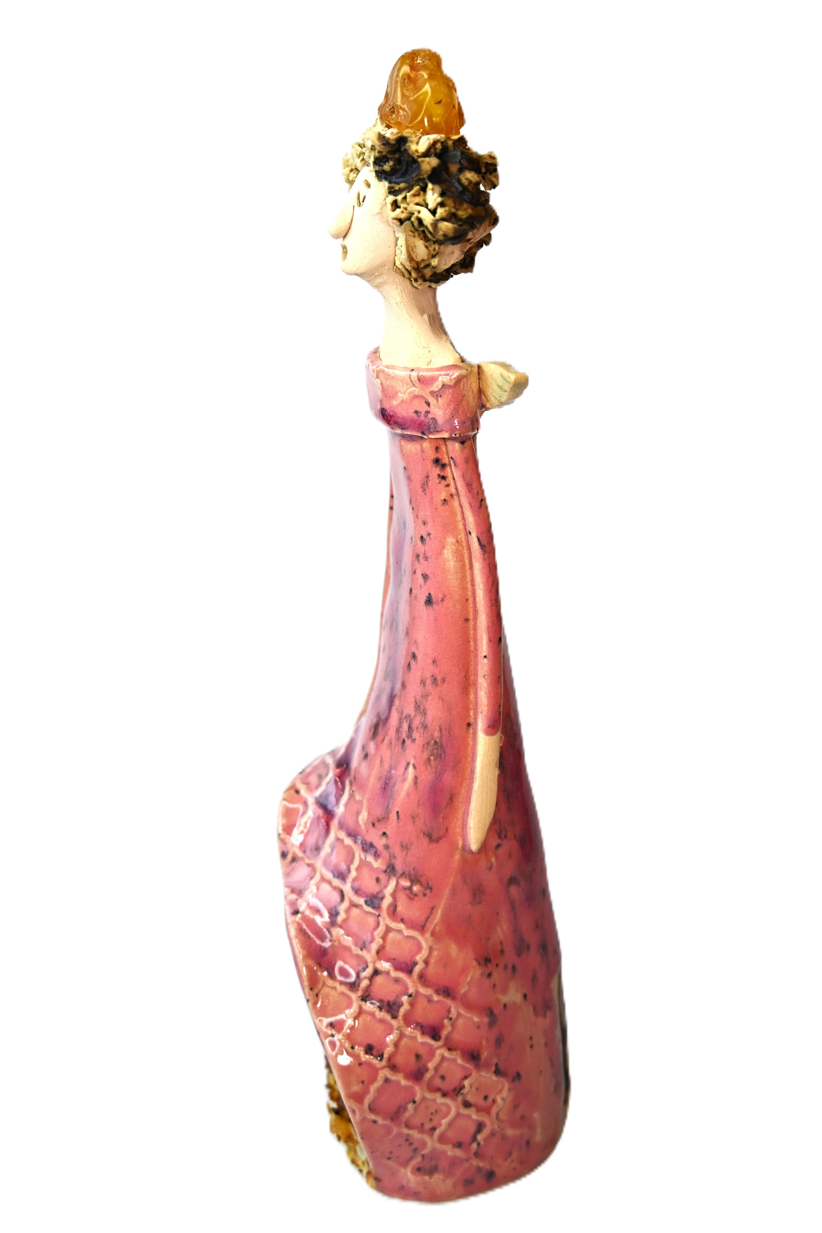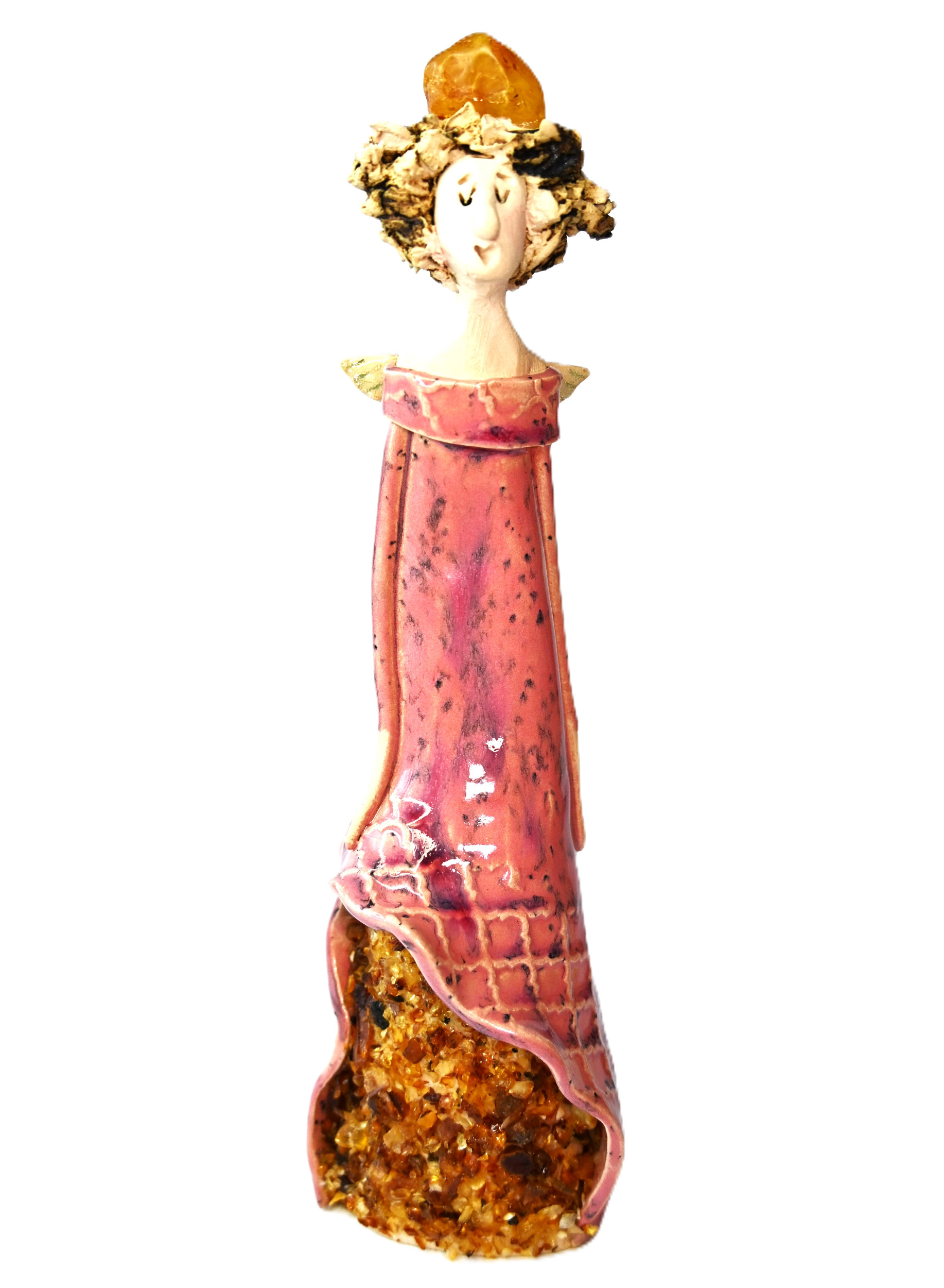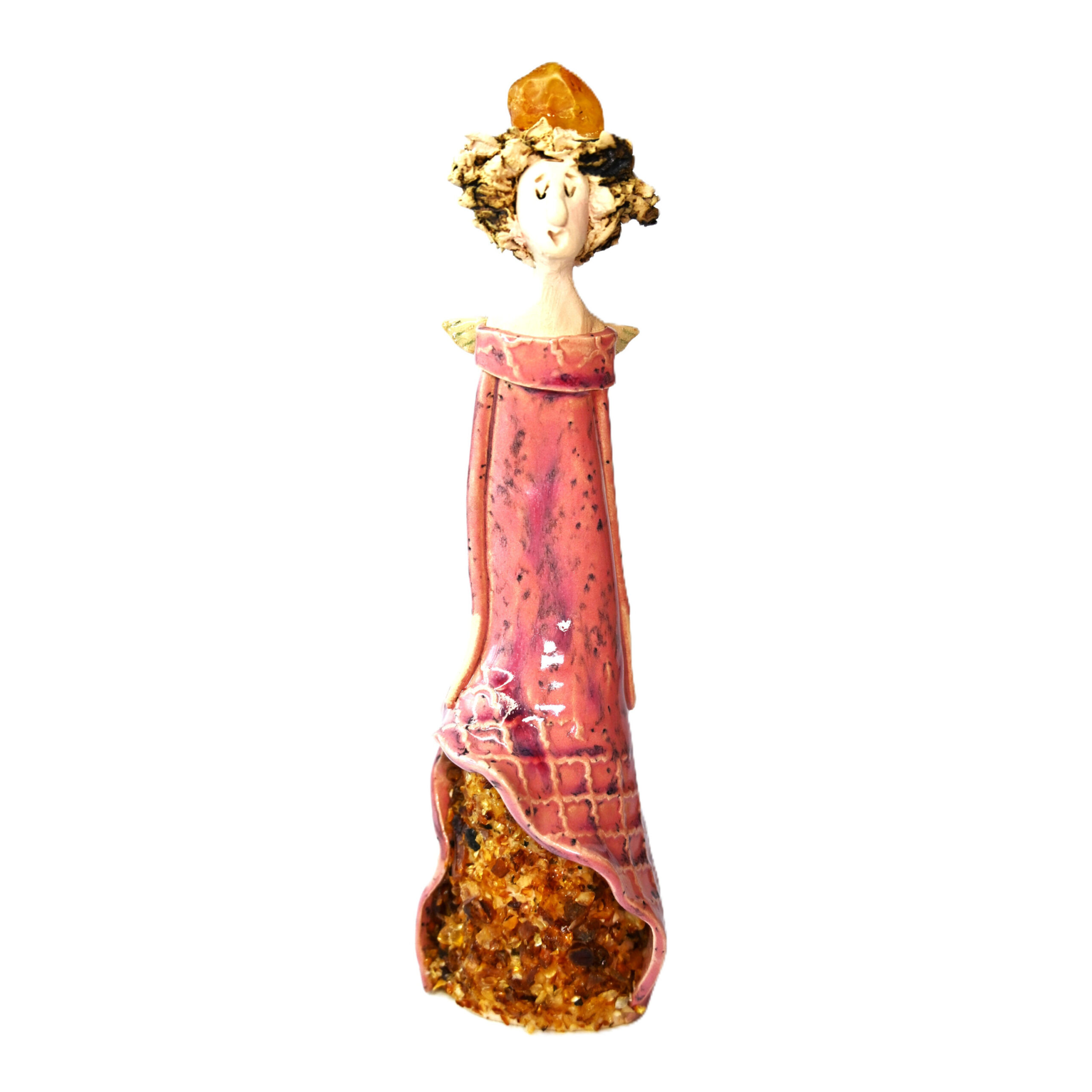 Ceramiczny ANIOŁ szczęścia z BURSZTYNEM stojący RĘKODZIEŁO figurka NA PREZENT *różowy*Ceramiczny ANIOŁ szczęścia z BURSZTYNEM stojący RĘKODZIEŁO figurka NA PREZENT *różowy*