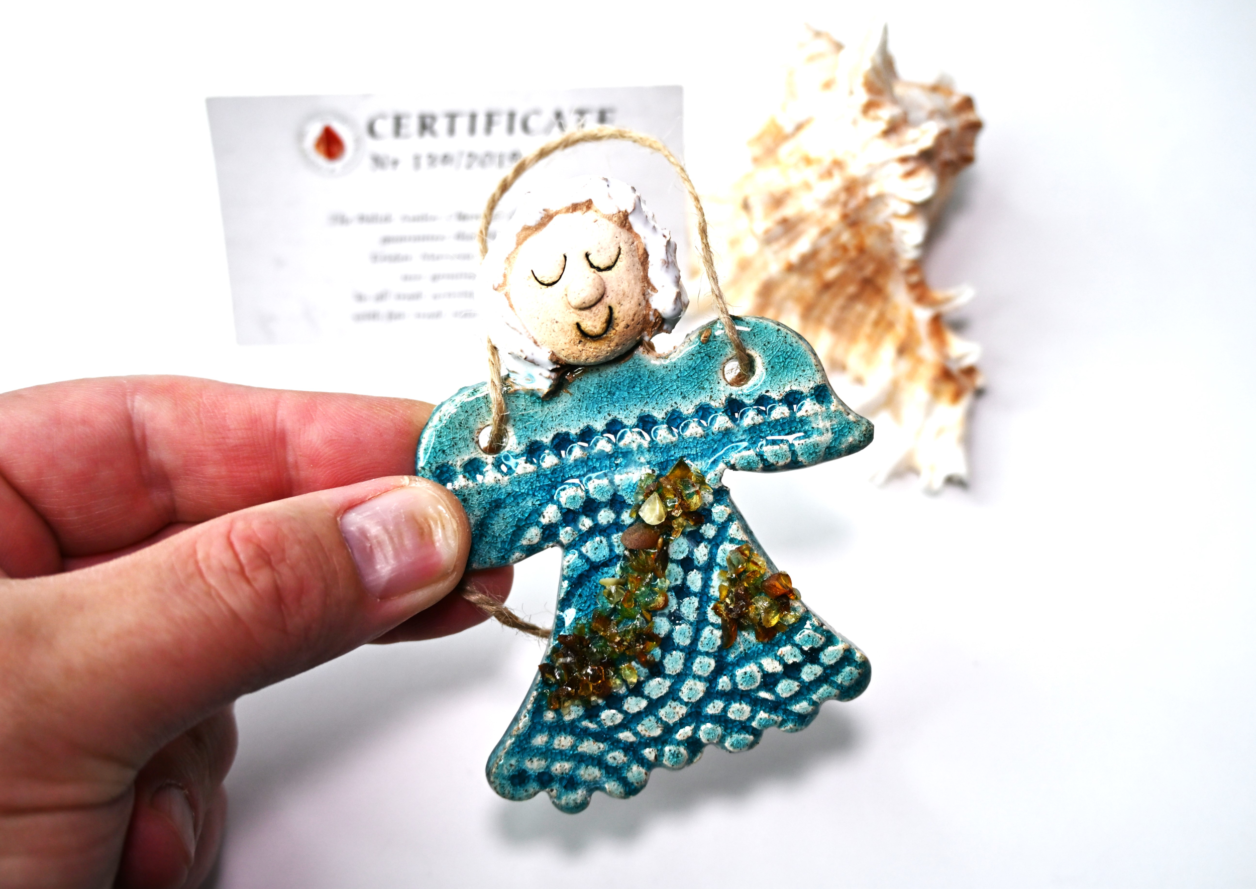 Nasz ANIOŁEK ceramiczny z BURSZTYNEM jest idealnym pomysłem na prezent, jako dodatek do prezentu, z okazji urodzin, imienin, rocznicy, na Walentynki, pod choinkę lub po prostu … z myślą o sobie lub z miłości do drugiej osoby.