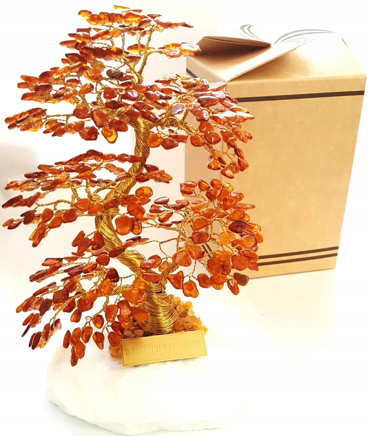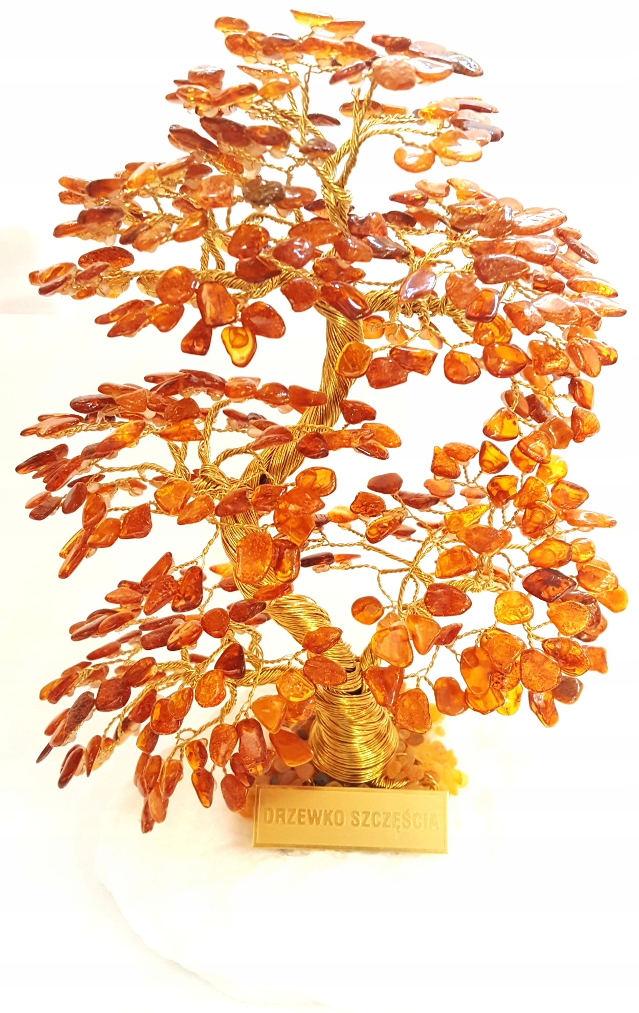 Drzewko szczęścia jest wykonywane wyłącznie ręcznie, co wpływa na jego wyjątkowość. Odcień listków bursztynowych jest różnobarwny, z odcieniami klasycznego brązu. Podstawą drzewka jest kamień kwarcowy.