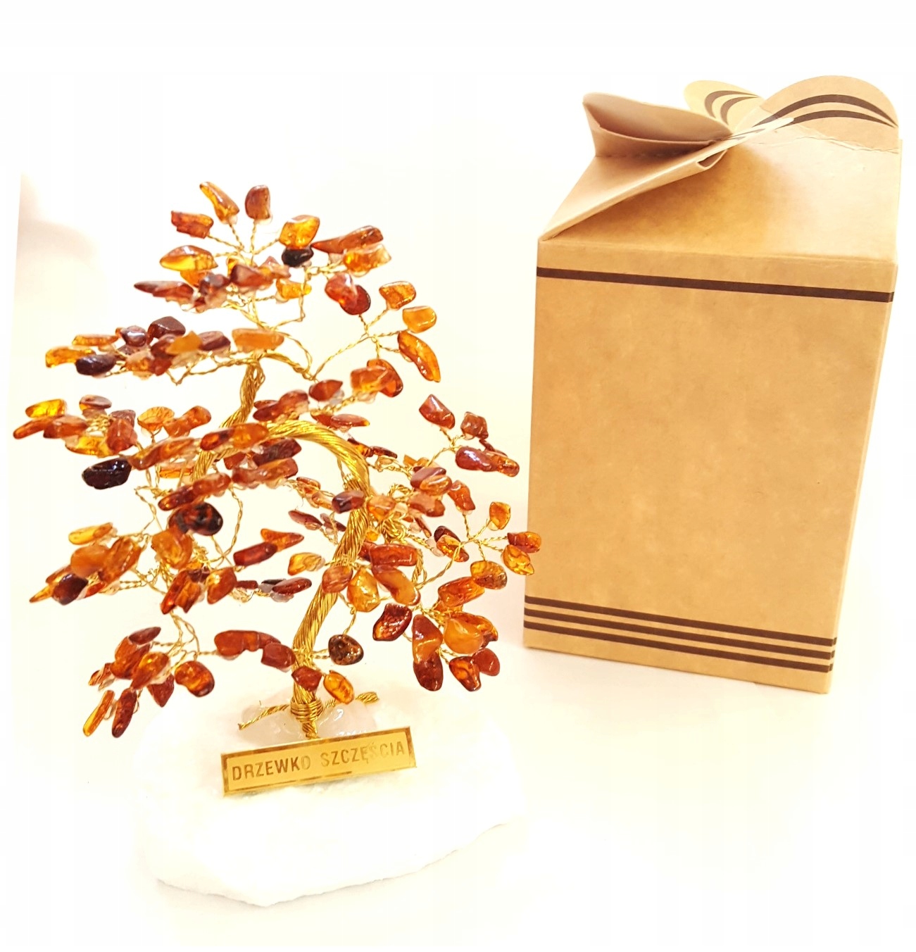 DRZEWKO SZCZĘŚCIA komplet BURSZTYN na PREZENT+cert