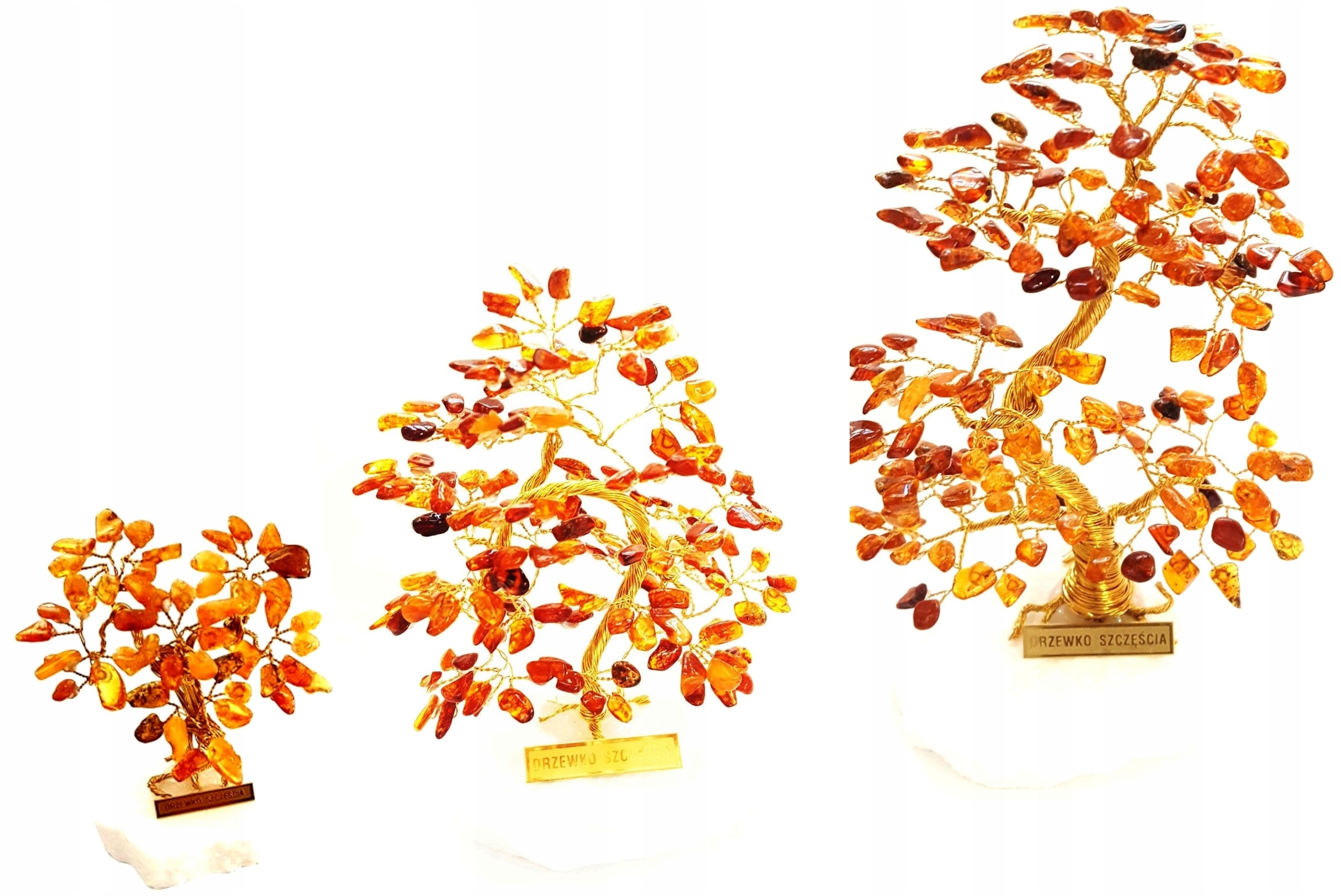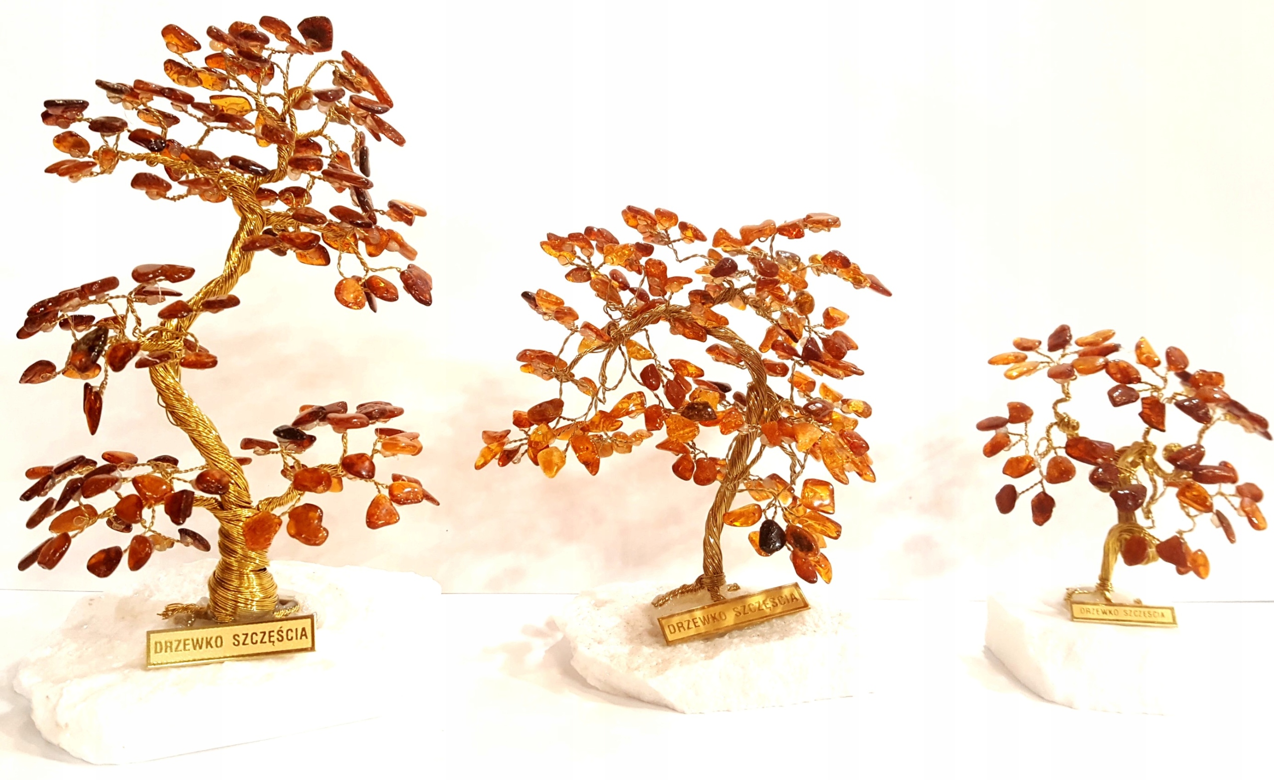 DRZEWKA SZCZĘŚCIA zestaw 3 drzewek *** prawdziwy BURSZTYN ***