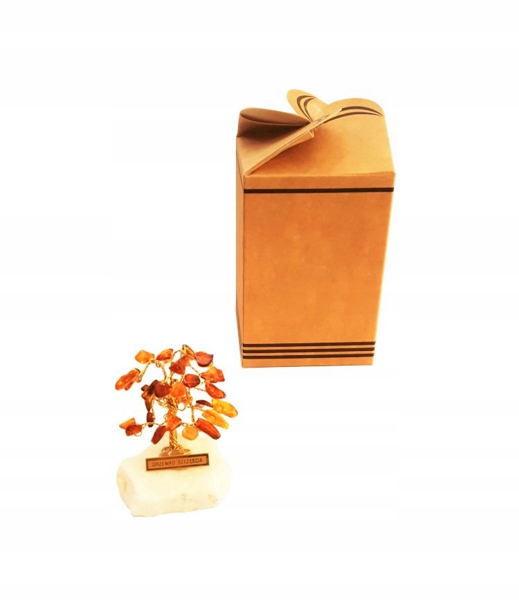 DRZEWKO SZCZĘŚCIA Naturalny BURSZTYN pamiątka+CERT
