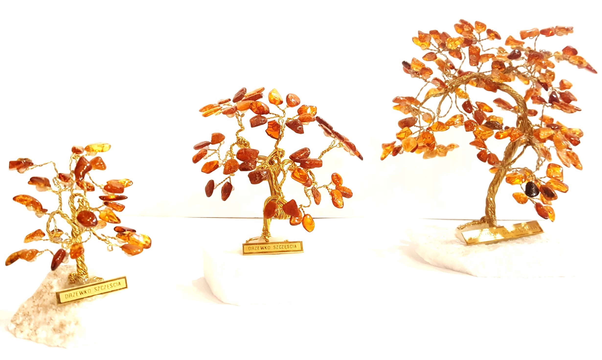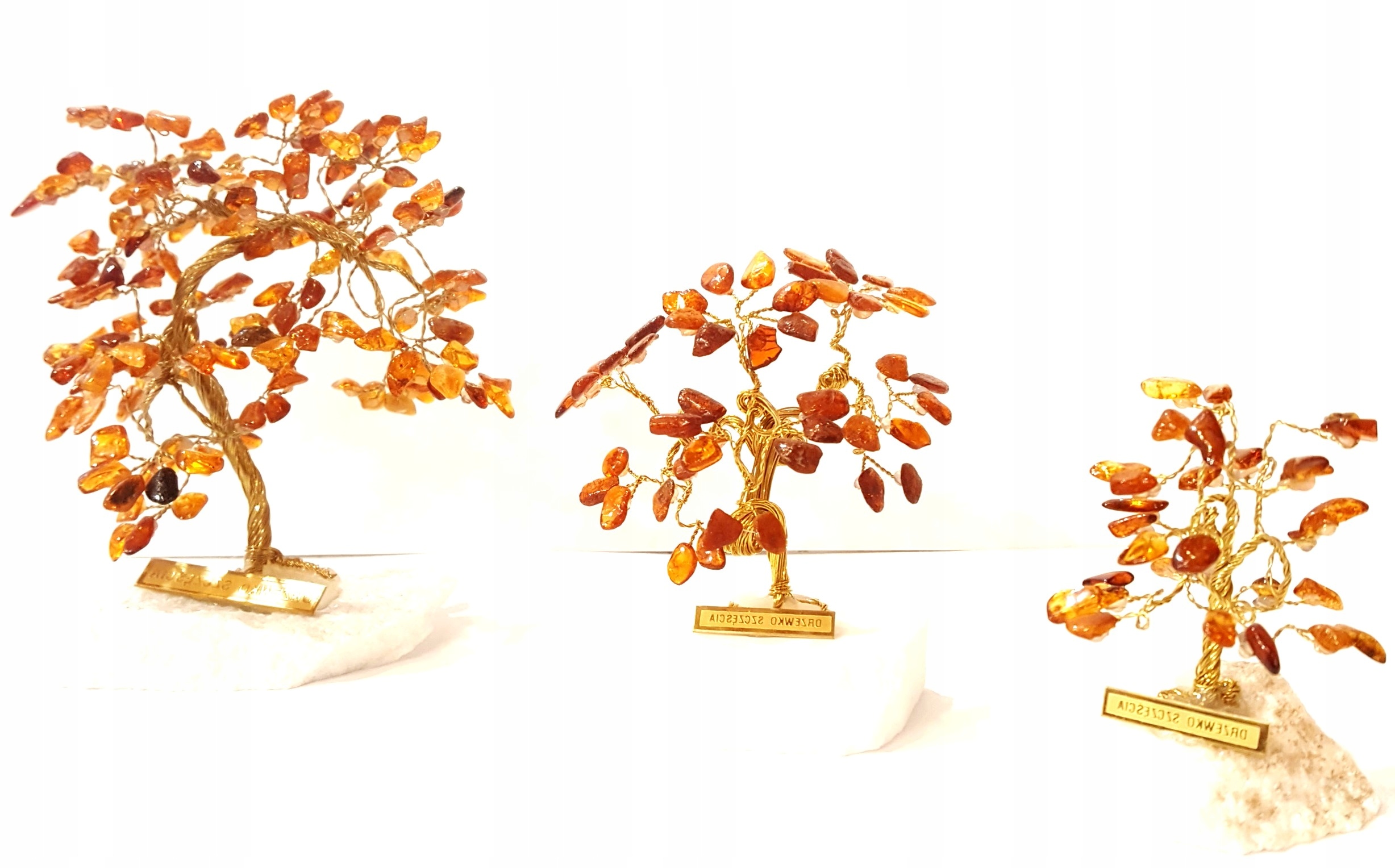 DRZEWKA SZCZĘŚCIA zestaw 3 drzewek *** prawdziwy BURSZTYN ***