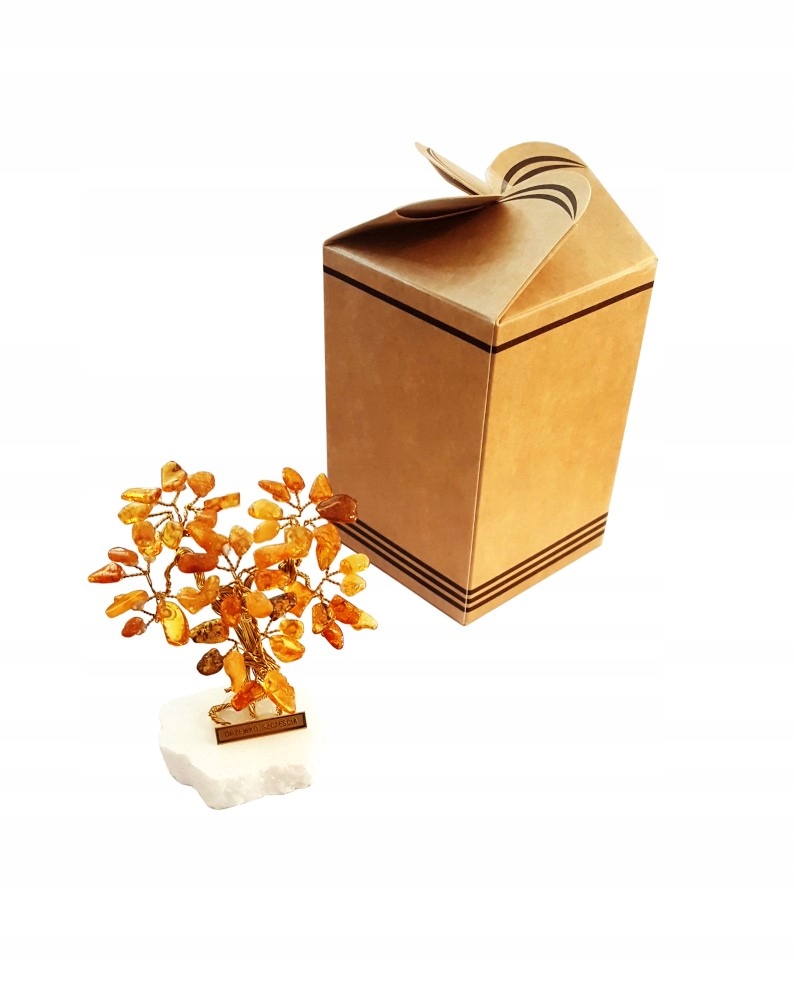 Drzewka szczęścia są wykonywane wyłącznie ręcznie, co wpływa na ich wyjątkowość. Odcień listków bursztynowych jest różnobarwny, z odcieniami klasycznego brązu. Podstawą drzewka jest kamień kwarcowy.
