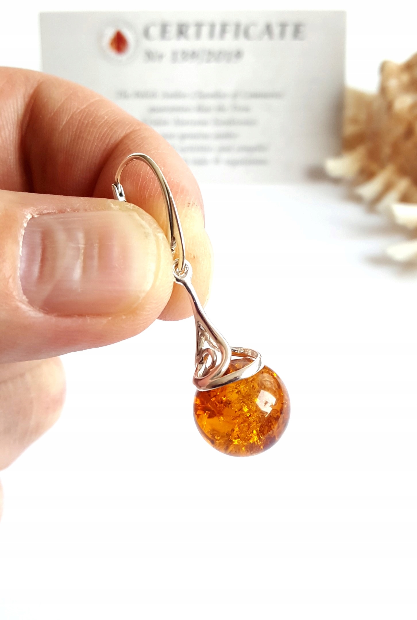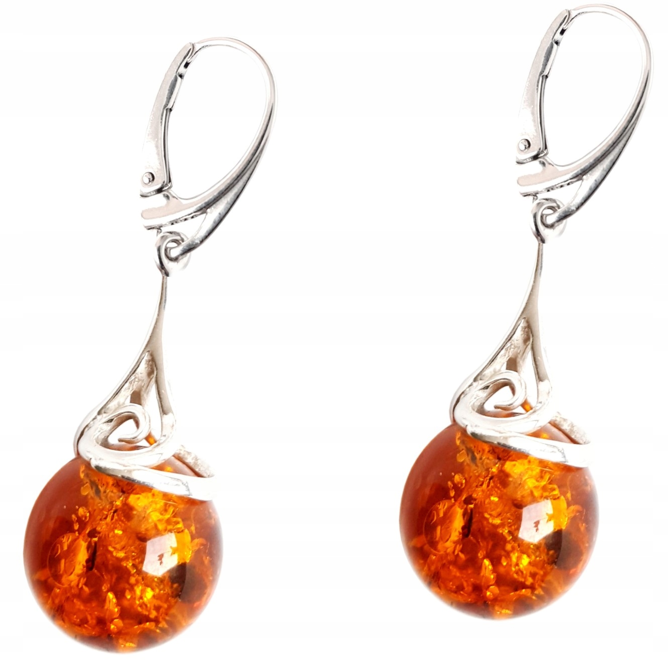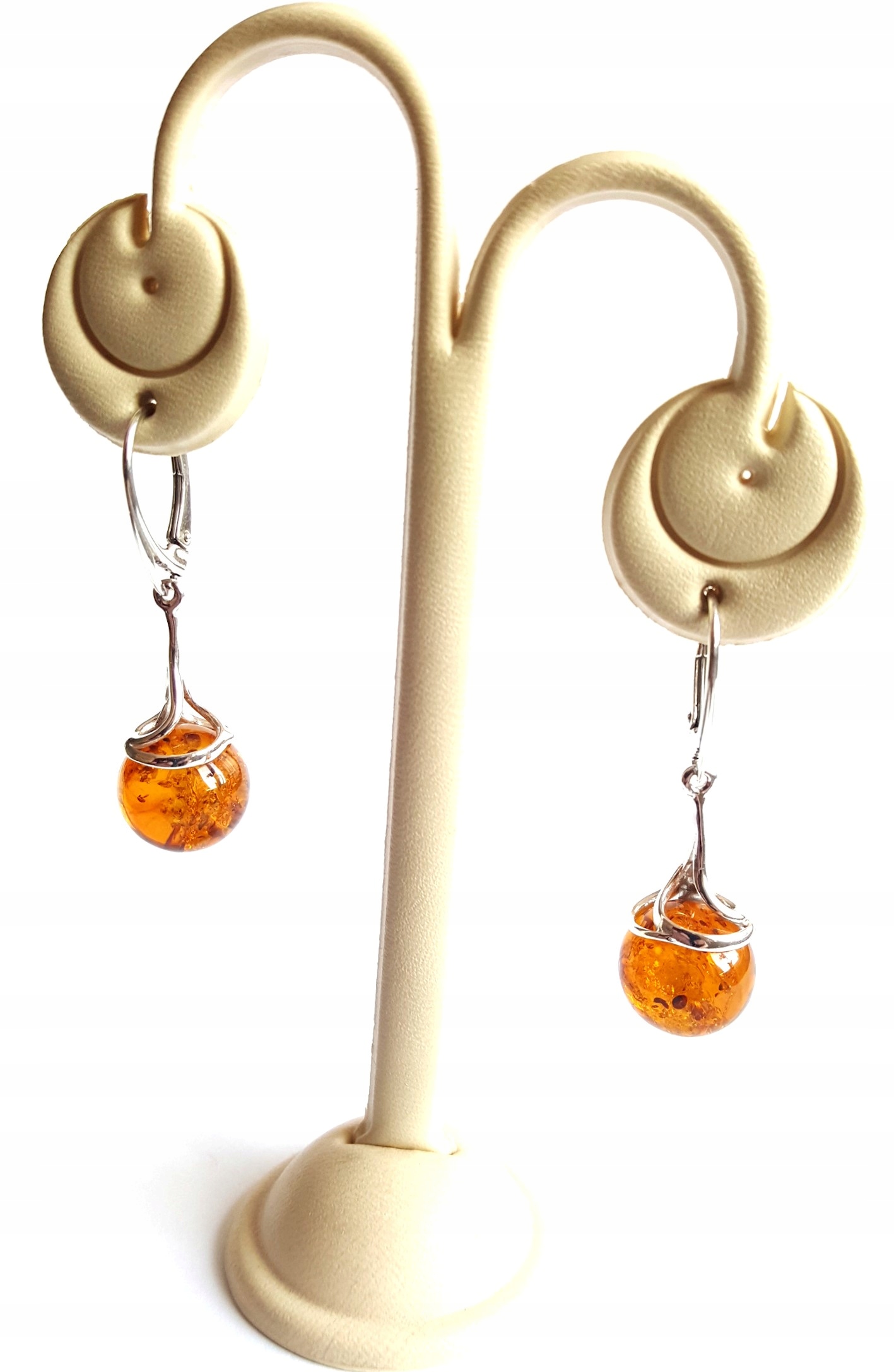Eleganckie KOLCZYKI SREBRNE pr. 925 z BURSZTYNEM. Klasyka i oryginalność.