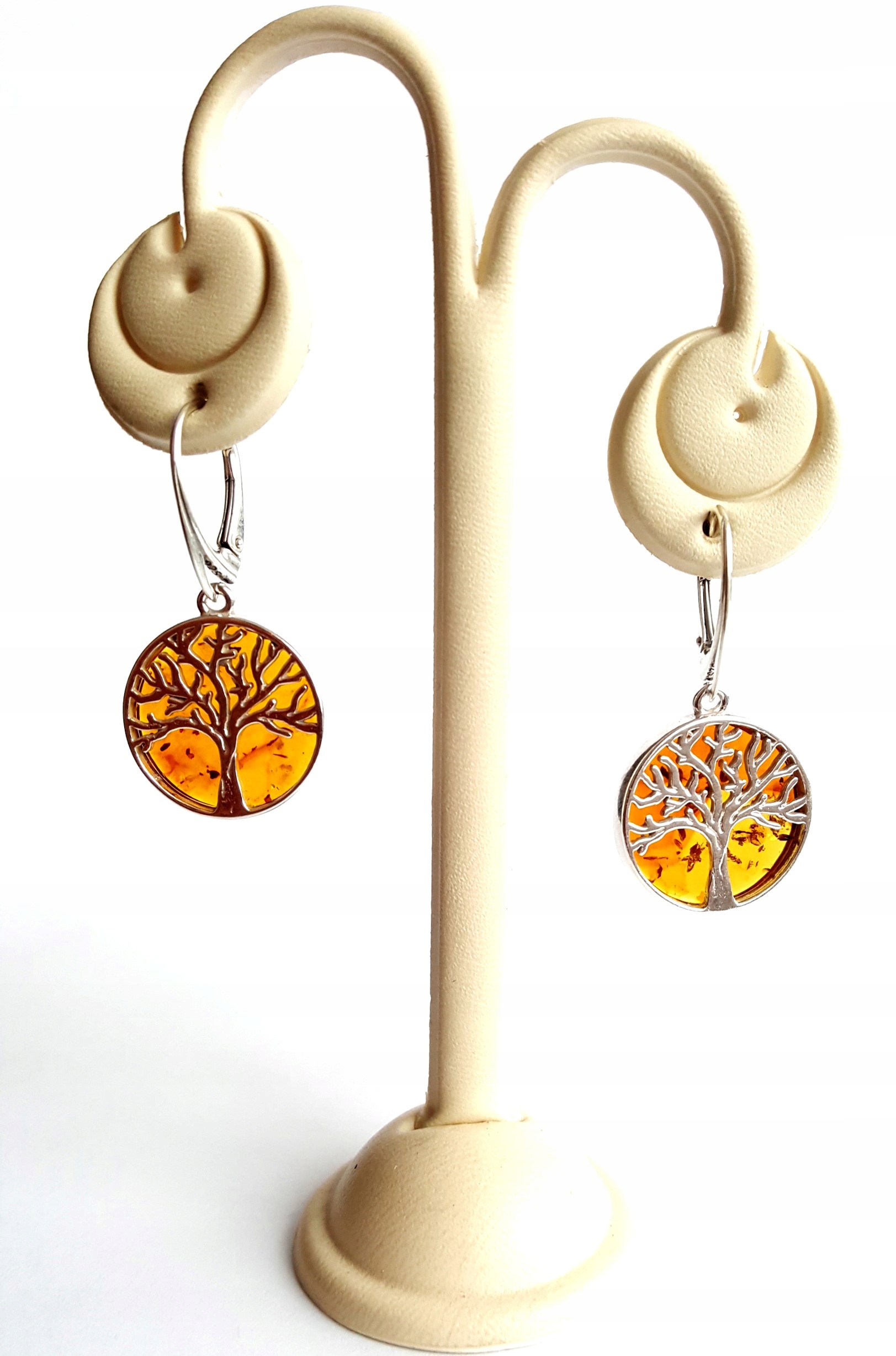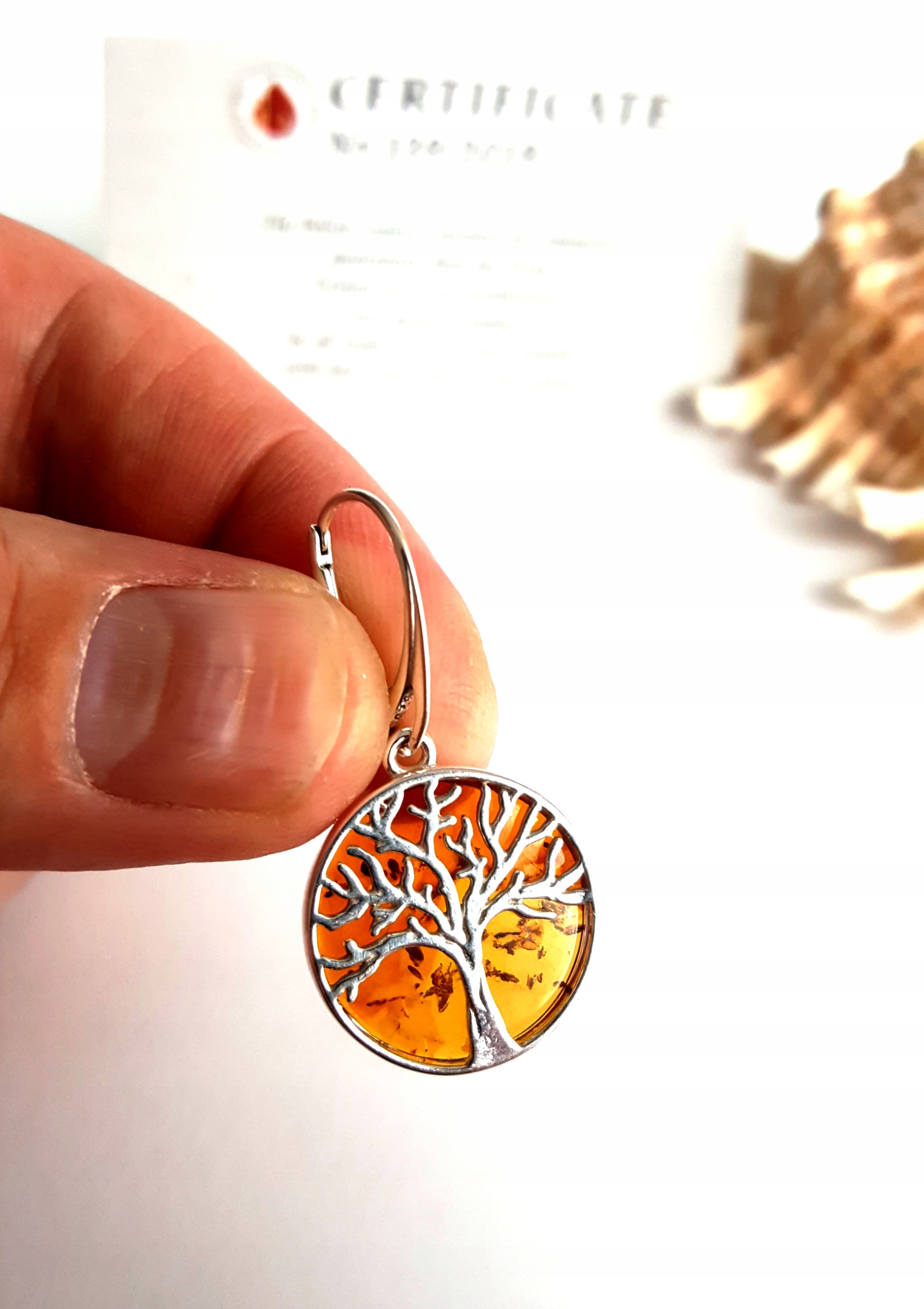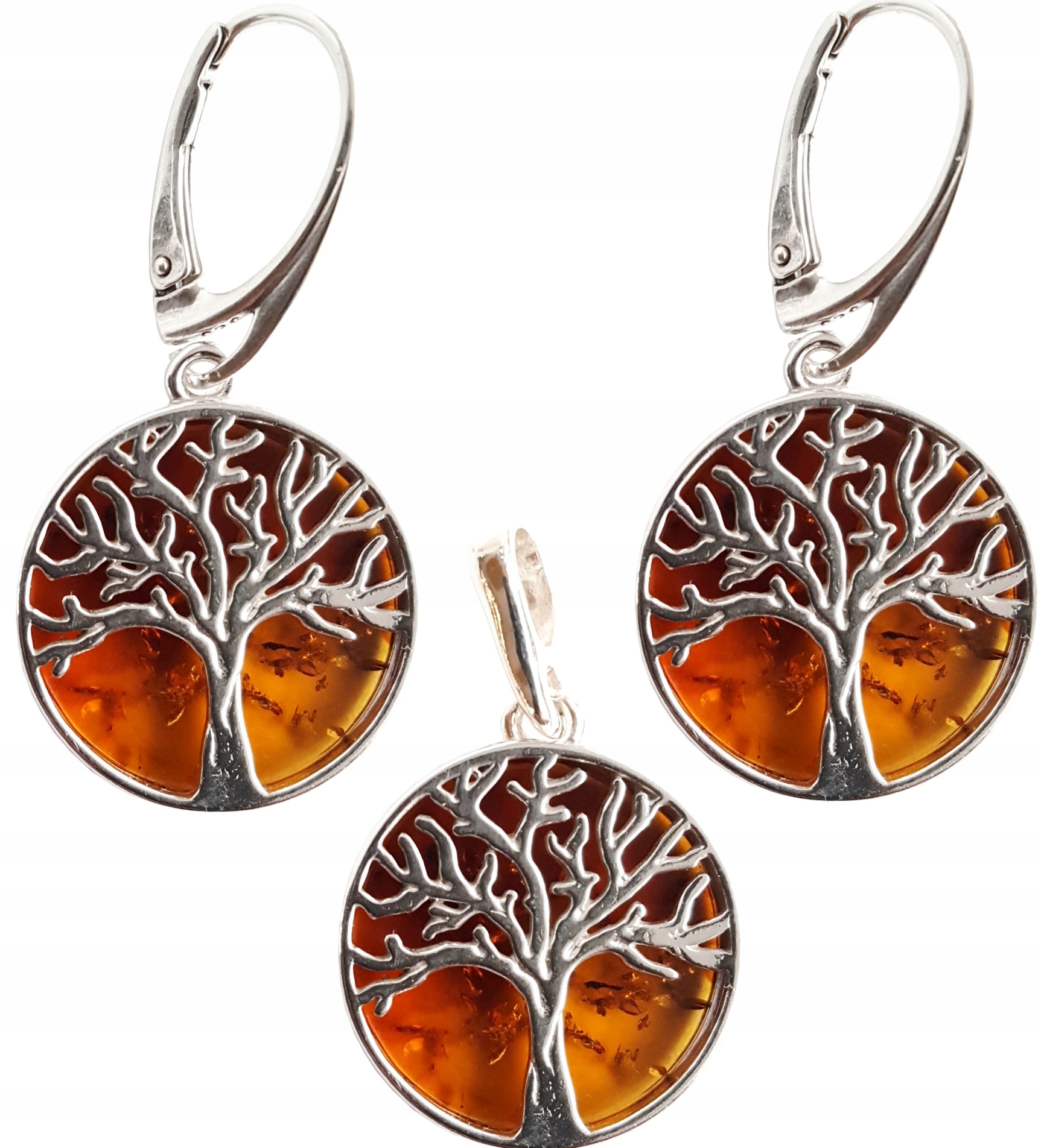 Kolczyki DRZEWKO ŻYCIA + wisiorek BURSZTYN-srebro