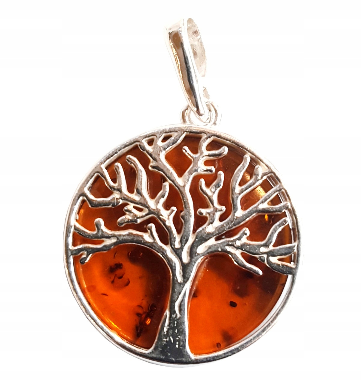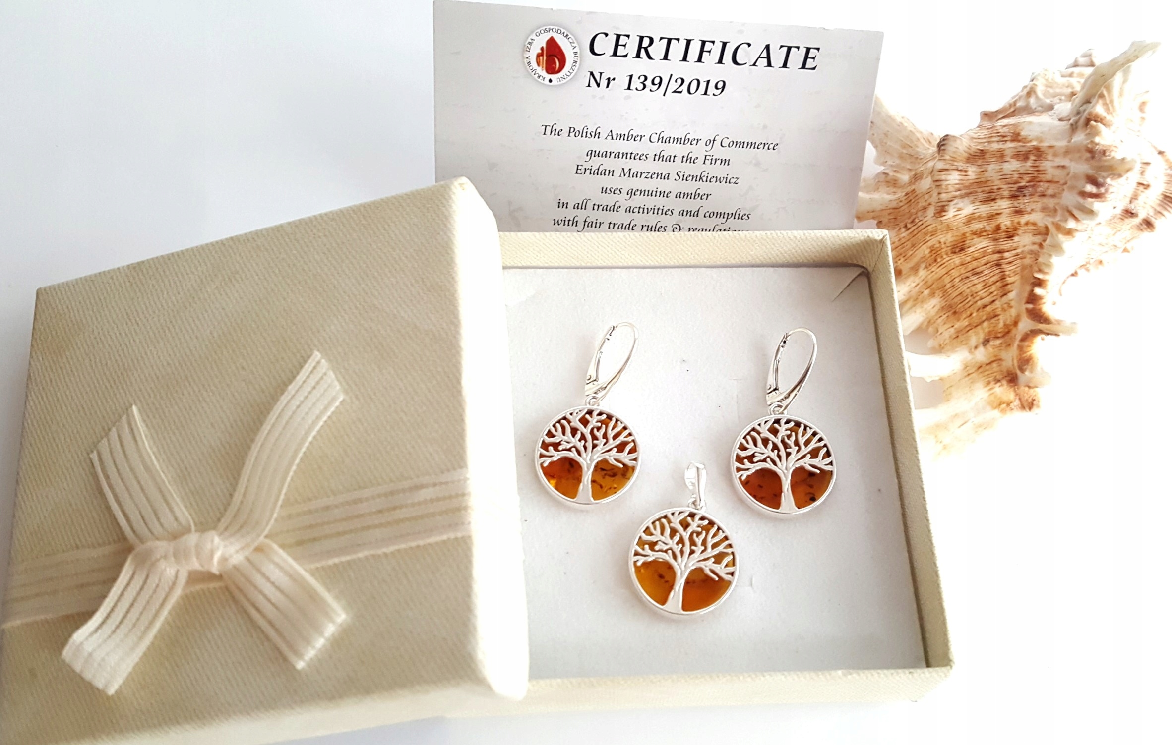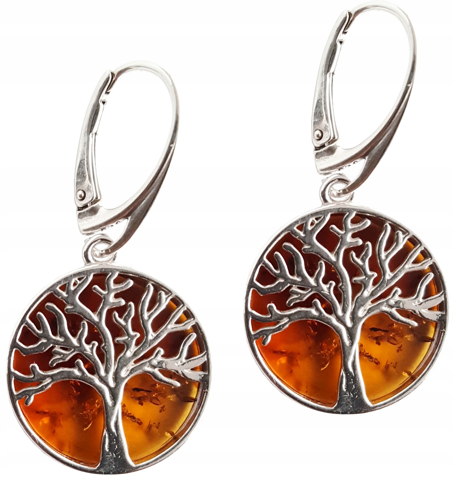 Kolczyki DRZEWKO ŻYCIA + wisiorek BURSZTYN-srebro