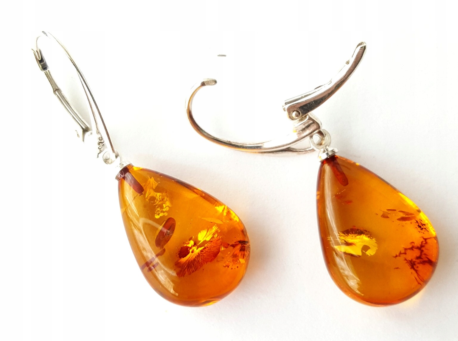Kolor bursztynowych kolczyków jak również srebra może różnić się od przedstawionego na zdjęciu.