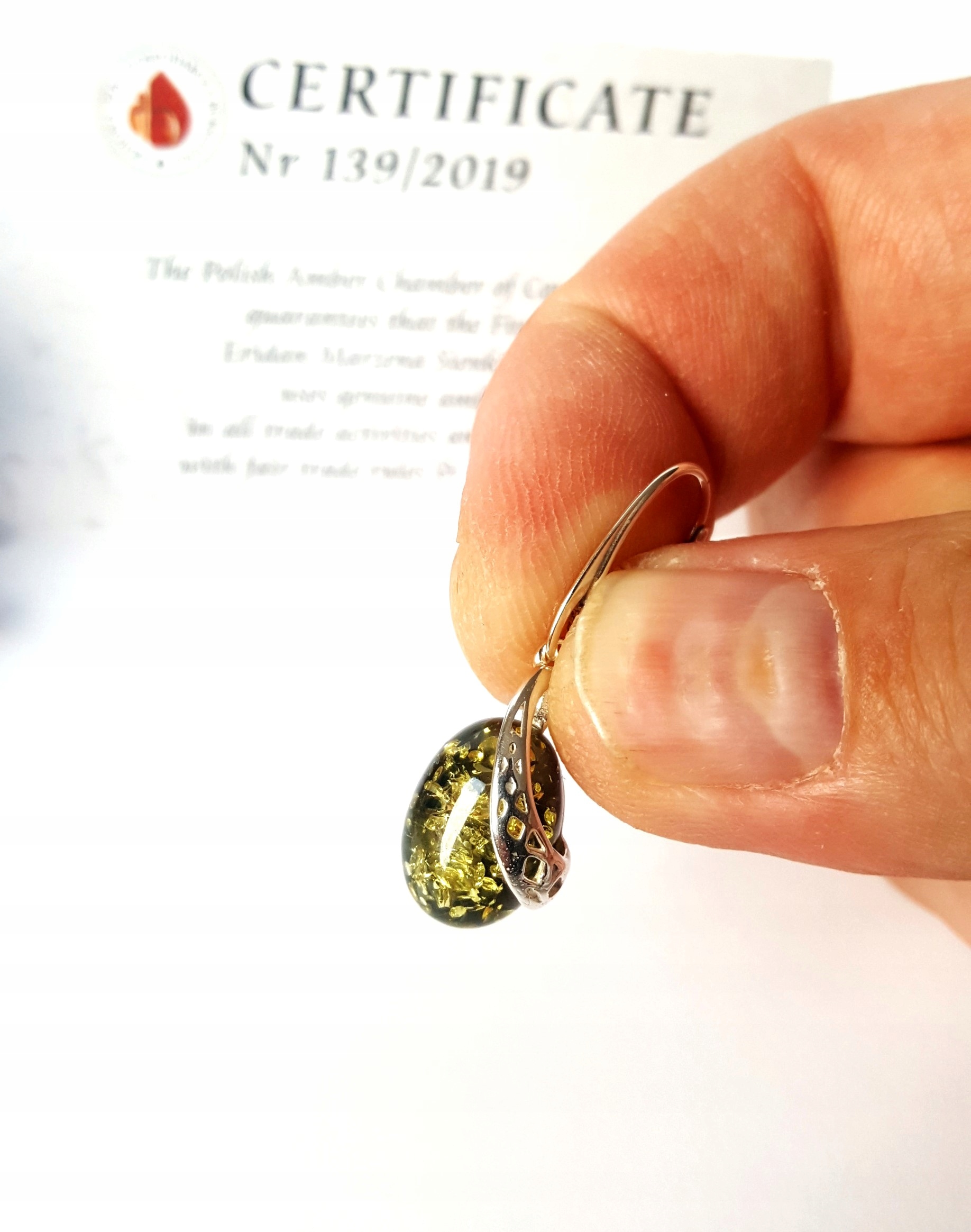 *** KOLCZYKI srebrne z ZIELONYM BURSZTYNEM ***