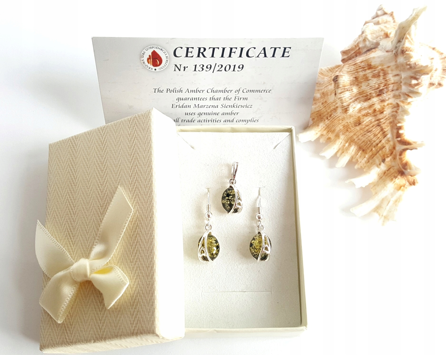 NATURALNY BURSZTYN * AUTENTYCZNE SREBRO pr. 925 * CERTYFIKAT